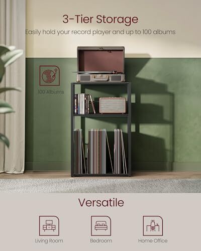 Return Policy Fast Delivery Trusted seller Record Player Stand, 3-Tier Side Table, Vinyl Record Storage up to 100 Albums, End Table for Living Room, Bedroom, Ebony Black ULET275B01 Product Description 【3-TIER DESIGN】This bedside table features a tabletop for your record player and 2 open shelves that can hold up to 100 albums. Enjoy a tidy and organized music area 【EASY ASSEMBLY】This record player stand comes with detailed instructions and labeled parts, making it a breeze to assemble in just 6 simple steps 【VERSATILE USE】This turntable stand doubles as a side table, making it a versatile addition to your living room, bedroom, or study. Enjoy your afternoon tea or store daily essentials with ease 【STURDY AND STYLISH】Crafted from robust particleboard and steel, this couch table is built to last. The ebony black color creates an industrial look, adding a touch of vintage charm to your decor 【THOUGHTFUL DETAILS】The dense mesh prevents items from falling off, while the removable U-shaped dividers at the bottom allow you to customize your storage space to fit your needs Shipping Returns Payment Shipping Shipping is FREE to all addresses other than APO/PO boxes in the lower 48 states. All our stock ships from US-based warehouses. Shipped via USPS or UPS (depending on location and package weight) Unless stated otherwise, all orders will ship within 24-72 hours of your payment being processed. Check our feedback to see the great reviews of FAST shipping we offer. Returns Seller does not accept returns Payment We currently accept payment via eBay managed payments only. Once payment is cleared, we will dispatch your shipment within 1-3 business days. Please refer to the "Shipping" tab for more information regarding shipping speed to your destination.