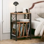 【Unique Design Record Player Stand】- 1> Adopts X-shaped wire design on three sides to ensure its superior stability which is practical and aesthetics. 2> Visualized diamond mesh design on below sides of this vinyl record holder let you easily pick the Album you want from lots of. 3> Adjustable foot design at the bottom makes the table suitable for different heights of floor conditions,such as carpeted floors. 【Holds at least 200 Albums & 200 lbs Load-bearing】- This record player stand with storage has a weight capacity of up to 200 lbs that you can put large record player on its top board,it can holds at least 200 albums.Four separated zones make it easier for you to sort various types of albums, books,magazines and so on.Our upgraded record player stand provides more storage space that you can put more items on first and second tier. 【Diversified Usage】-The four partitions of the record player table can be removed to use as a record shelf, nightstand, side table,turntable stand,bookcase in your living room,bedroom,office,study room etc.More usages waiting for you to discover... 【Safe &Reliable Material】-This vinyl record storage cabinet is made of MDF board, which is durable for your long-term use.The surface of the stand is smooth without burrs so that you can use it with confidence.Top MDF board has good waterproof character and EPA certification.This record player table has a vintage wood texture, but without losing the modern popular style with its simple vertical design, which reduces the complexity and saves space to a great extent. 【Easily Assemble&Worry-free Purchase】- Our vinyl record storage equipped with numbered parts and detail step-by-step instructions along with the package so that you can easily assemble it within few mins.A small wrench concluded and no more other tools needed.All customers are access to considerate service of 7*24 Hours,as well as 180 days money-back guarantee and warranty.If you got any quality or assemble issues,please feel free to contact us!