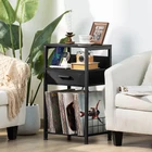 Record Player Stand with Fabric Drawer, 3 Tier End Table with Storage Up to 100 Albums,Turntable Stand for Vinyls, Black Records Holder Shelf for Living Room, Bedroom [Stylish 3 Tiers Record Player Stand] This vintage-inspired stand features 3 tiers, including a spacious tabletop suitable for various record player sizes. Further, the 2nd and 3rd open storage shelves can hold all kinds of record and media essentials up to 100 albums, there is also a non-woven drawer, providing a categorized storage solution that combines artistry and practicality. [Multi-functional Convenient Storage Table] This stand measures 11.81 (D) x 15.74 (W) x 27.95 (H) (inches), not only can be used as a record player stand, but also can be used as a printer stand, disk organizer, DVD stand, projector stand, and audio stand. Removable U-shaped dividers allow for customized storage on the bottom. [End Table with Charging Station] This small bedside table has 2 USB ports and 2 charger stations, which can help you easily connect electronic devices such as record players, speakers, phones and so on, and helping you enjoy the fun of music more conveniently. Helping you eliminates the hassle of searching for a power source. [Media Stand with Drawer] This media stand includes a drawer made of non-woven fabric, the bottom of the drawer is supported by a hardboard, you can place some small devices such as grips, data cables, headphones, remote controls and so on. The organized storage is convenient for you to find them when you use them and avoid confusion. [Thicker Packaging & Easy to Assemble] We pack these industrial side tables in thicker foam and tough cardboard boxes to ensure they arrive in good conditions. These vinyl album turntable stands come with detailed instructions, labeled parts and assembly tools to help you assemble the album organizer shelf more easily.