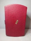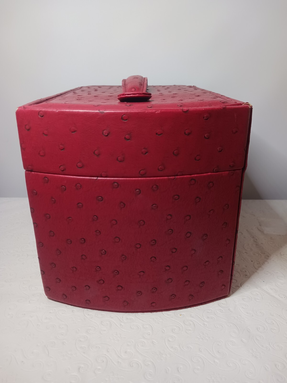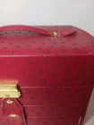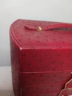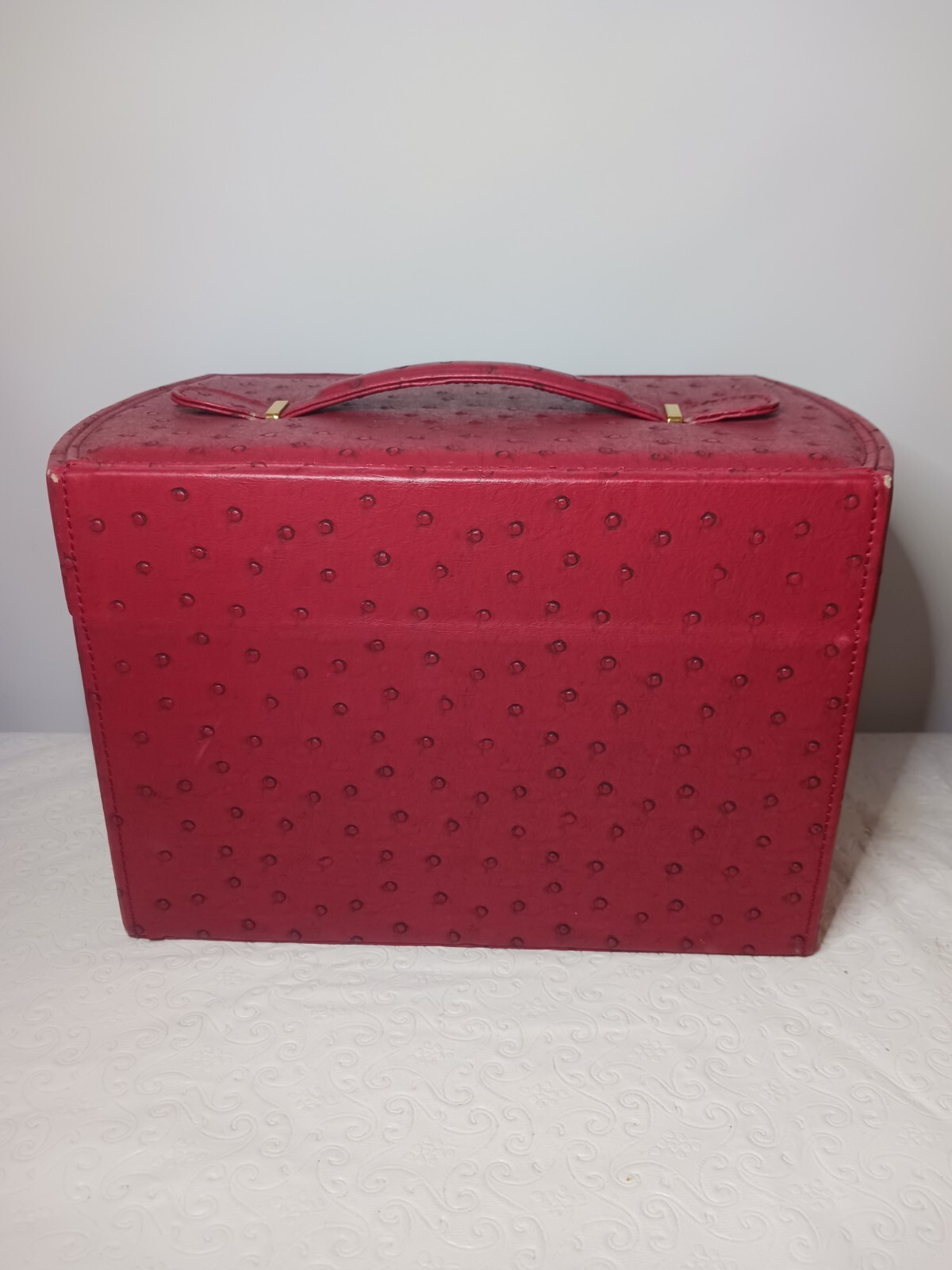 Arolly Leatherette Jewelry Box with working Key Red Mirror 3 Tier Travel Case Faux Leather. It is a brick red color. The faux leather has some minor wear in several areas due to age and use, see photos, but is in overall good used condition and has plenty of life left. Good sturdy quality box. 11" x 7.25" x 7.25".All measurements are approximate. Preowned good condition. I MAKE EVERY ATTEMPT TO SHIP WITHIN 24 HOURS OF PAYMENT. SAME DAY SHIPPING IF TIME ALLOWS. Thank you for shopping in my store and supporting small business.