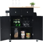 Kitchen Island, Rolling Kitchen Storage Cart with 3-Tier Spice Rack and Towel Rack, Microwave Cart with Wheels and Rubber Wood Tabletop, 34.5 x 18 x 35.5 inches (Black Kitchen Island) Product Description About this item 【A Well Worth Extension】At this very moment, we know that you are seeking for some extra storage and counter space for your kitchen or dining room and you may feel perplexed among the various choices in the market. will make this simple for you by recommending this multifunctional kitchen island with storage to you. It’s a great extension to your kitchen or dinging room by providing versatile storage space to you to get your kitchen related stuffs well organized. 【Diversified Storage Space】The left handle bar is not only designed to push or pull the kitchen cart easily but can also work as a towel rack. Near the handle is the rubber wood tabletop, which gives you ample space for food preparing or provides extra space for your coffee machine or microwave. The 3-tier spice rack that equipped with rails keeps condiments or even wine bottles stay safe and sound. Not to speak of the two drawers and the storage cabinet with double doors. 【Considerate Details】1. Selected Material: P2 MDF and rubber wood are adopted to manufacture this kitchen island cart. Hence, the kitchen trolley cart is very sturdy for daily use. 2. Adjustable Shelf: The inner shelf inside the storage cabinet could be adjusted in three position for better accommodating items with different heights. 3. Universal Rubber Wheels: Compared with plastic wheels, rubber wheels could give more support to the whole unit and two of which are even lockable. 【Patience Required During Assembly】Assembly of this kitchen storage island may require some extra patience for its versatility. You can’t be too careful when you are assembling it with included detailed instruction and please do identify the parts clearly before assembly. Should you have any problems with the assembly, just feel free to contact us at anytime and we’d be glad to help. 『What Cares』This kitchen island cart will come with instruction and necessary hardware. If any damage happens during shipping, we would cover all the cost.