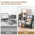 Multi-functional Record Player Stand: This 3-tier record player stand with vinyl storage can be used to store record player, albums, speakers, books, magazines, CDs and collections. It meets your different storage needs. On the top of turntable stand, it is suitable for various sizes of record players. The middle layer and bottom space is enough for vinyl record storage and others. Large Capacity For Vinyls : If you enjoy collecting different record vinyls, this would be an ideal record player table with album storage. The other side of additional record storage allows to place more vinyls. Also, you can separate them according to demand. Being able to display the facades of vinyls, it's easy to find the record vinyl you want. Solid And Study: The record shelf is made of strong wooden board, thicker iron, soft oxford fabric and adjustable feet. We adopt the high-quality material, which is friendly touch, durable, sturdy and secure. It is perfect choice to having this record player stand for your record player and vinyls. Product dimensions: 33.07"(L) x 29.13"(H) x 11.81"(W) Fit For Various Scenarios: Not only can be used as vinyl record storage cabinet, vinyl holder display shelf, but also nightstand, side table, end table in living room, bedroom. The retro wood texture shows mid-century style, and the soft oxford fabric adds modern-simple element for home decor. It will match kinds of scenarios. Well-packed & Easy Installation: Making it easier to complete the installation, the turntable stand comes with step-by-step instructions and all marked tool parts. We offer two combinations for customers, which would be more flexible. If you have any questions about our product, please feel free to reach out. We will always try best to service our customers. Multi-function Record Player Stand: This 3-tier record player stand with vinyl storage can be used to store record player, albums, speakers, books, magazines, CDs and collections. It meets your different storage needs. On the top of turntable stand, it is suitable for various sizes of record players. The middle layer and bottom space is enough for vinyl record storage and others. Large Capacity For Vinyls: If you enjoy collecting different record vinyls, this would be an ideal record player table with album storage. The other side of additional record storage allows to place more vinyls. Also, you can separate them according to demand. Being able to display the facades of vinyls, it's easy to find the record vinyl you want. Solid And Study: The record shelf is made of strong wooden board, thicker iron, soft oxford fabric and adjustable feet. We adopt the high-quality material, which is friendly touch, durable, sturdy and secure. It is perfect choice to have this record player stand for your record player and vinyls. Product dimensions: 33.07"(L) x 29.13"(H) x 11.81"(W) Fit For Various Scenarios: Not only can be used as vinyl record storage cabinet, vinyl holder display shelf, record player table, but also nightstand, side table, end table in living room, bedroom. The retro wood texture shows mid-century style, and the soft oxford fabric adds modern-simple element for home decor. It matches kinds of scenarios. Well-packed & Easy Installation: Making it easier to complete the installation, the turntable stand comes with step-by-step instructions and all marked tool parts. We offer two combinations for customers, which would be more flexible. If you have any questions about our product, please feel free to reach out. We will always try best to serve our customers.