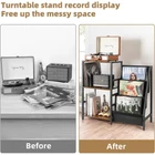 Product Description Material Wood, Metal Color Brown&Black Special Feature Rust Resistant Product Dimensions 11.81"D x 33.07"W x 29.13"H Shelf Type Tiered Shelf Multi-function Record Player Stand: This 3-tier record player stand with vinyl storage can be used to store record player, albums, speakers, books, magazines, CDs and collections. It meets your different storage needs. On the top of turntable stand, it is suitable for various sizes of record players. The middle layer and bottom space is enough for vinyl record storage and others.