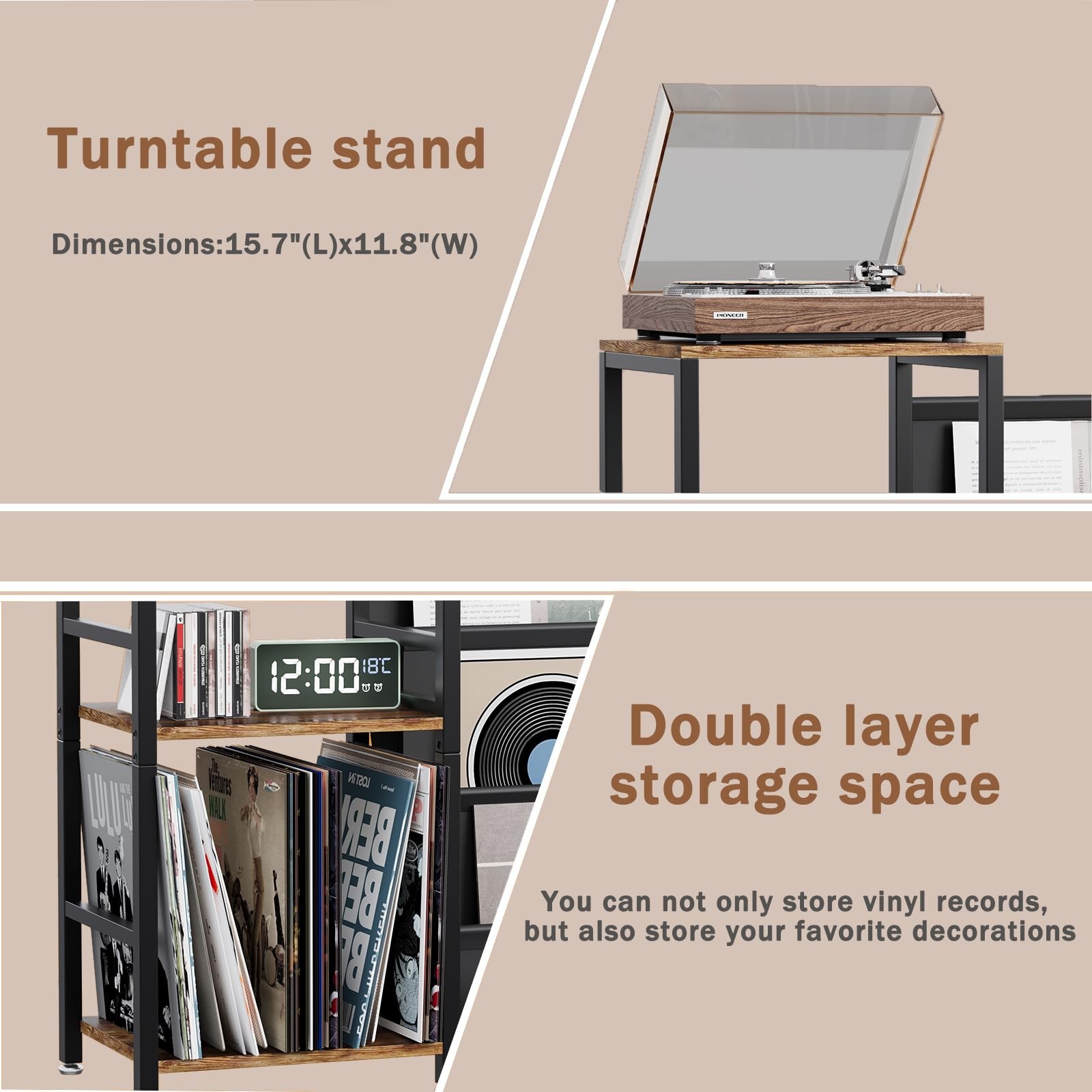 Record Player Stand,Turntable Stand with 3-Tier Vinyl Record Storage up to 200 Albums,End Table with Vinyl Display Holder Shelf,End Table for Living Room,Bedroom(Vintage Brown) record player stand,vinyl record storage,turntable stand,vinyl record holder,record stand,record player table,vinyl shelf record player stand with vinyl storage,record holder,vinyl record stand,vinyl stand,vinyl storage,record shelf,vinyl record display,vasagle record player stand,record storage,record table,vinyl record shelf,record display,vinyl record player stand,vinyl holder,vinyl table,record player stand with storage,record player shelf,record display shelf lego record player,vinyl display,record player with stand,magazine rack,vinyl player stand,record cabinet,record holder stand,anita baker vinyl 3-TIER New Design: This 3-tier record player stand with vinyl storage can be used to store record player, albums, spea.kers, books, magazines, CDs and collections. Enjoy a tidy and organized music area. Show Your Collection:This Vinyl Record Storage having multiple storage spaces,It will showcase your albums, speakers, books, magazines, CDs, and collections very well.At the same time, it is convenient for you to browse and search. Strong Materials:The Record Player Stand used thickened plates and steel frames can provide a load-bearing capacity of over 150 pounds,ensuring reliability for long-term use Versatile Use:Not only can be used as vinyl record storage cabinet, vinyl holder display shelf, record player table, but also nightstand, side table, end table in living room, bedroom. Easy to Install:This record player stand comes with a complete set of installation accessories and tools,each with an additional quantity to ensure smooth installation.The instruction manual is in the form of a photo and can be installed in just 40 minutes.At the same time,we provide 24-hour service,and we will solve any problems for you as soon as possible