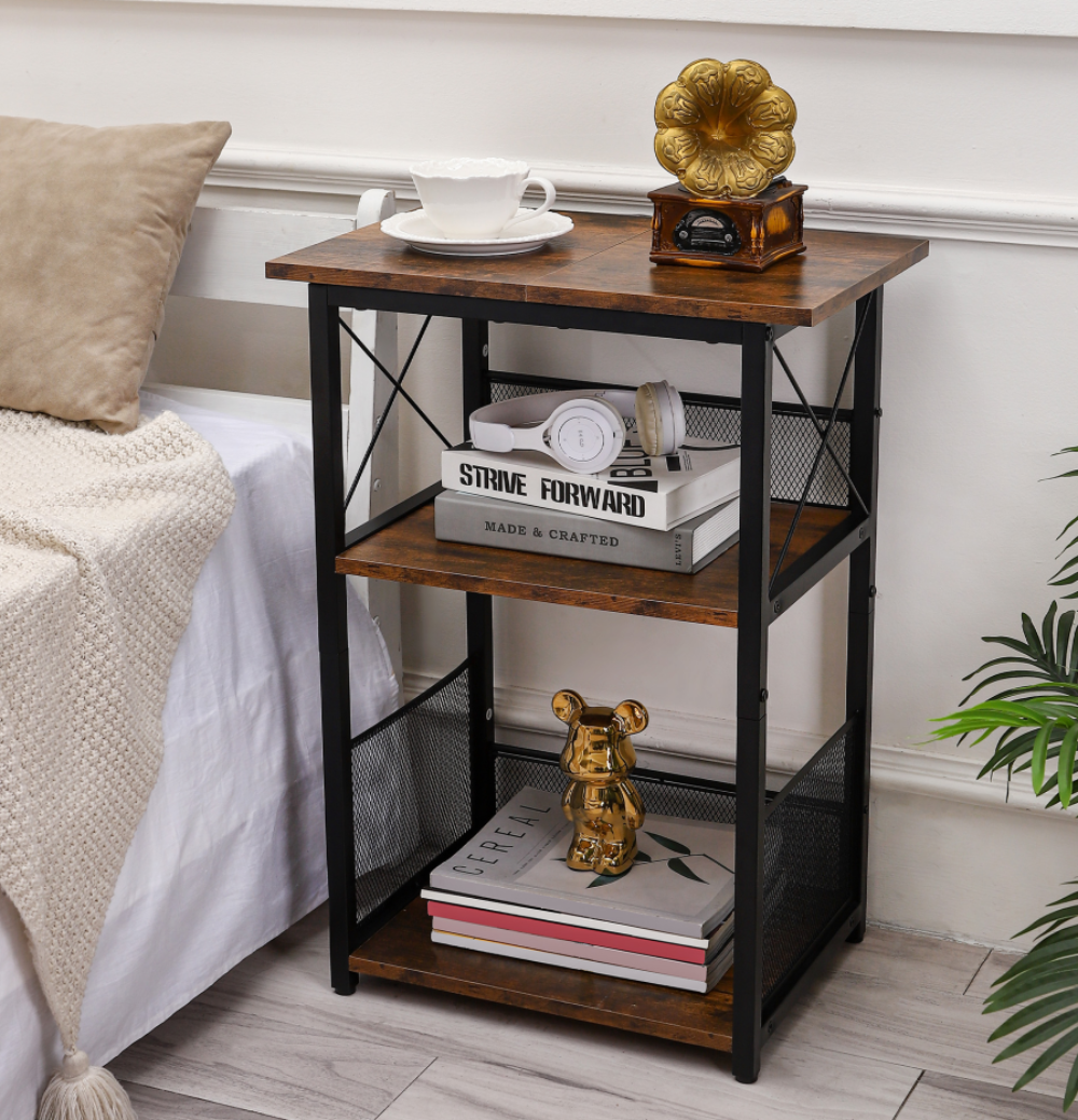 About this item [Stylish 3 Tiers Record Player Stand] This vintage-inspired stand features 3 tiers, including a spacious tabletop suitable for various record player sizes. Further, the 2nd and 3rd open storage shelves can hold all kinds of record and media essentials up to 100 albums, providing a categorized storage solution that combines artistry and practicality. [Versatile & Convenient End Table] Measuring 19.7(D) x 16.2(W) x 27.95(H) in inches, this stand can not only serve as a record player stand, but it also doubles as a great side table or end table for small spaces. With its proper height, you can easily enjoy a glass of warm milk or place other items on it. The removable U-shaped dividers allow for customizable storage space at the bottom. [ Retro Classic Design ] The mid-century record player table combines the rustic brown wood grain with matte black metal stand, which retains the vintage feel of the wood grain without compromising the modern industrial style. The turntable stand is made of durable and sturdy wooden boards, corrosion and rust resistant metal frame, which ensures a longer usage. [ Thoughtful Designed Details ] The classic rectangular frame of the tall record display shelf and lightweight design helps you move and carry it more easily. And we set up iron net and small wooden boards that can prevent the records and the items from falling off the 2nd and 3rd open shelves of the record player stand. We also designed adjustable feet to help the record player cabinet stay level on uneven floors. [ Thicker Packaging & Easy to Assemble ] We pack these industrial record player stands in thicker foam and tough cardboard boxes to ensure they arrive in good conditions. These vinyl album turntable stands come with detailed instructions, labeled parts and assembly tools to help you assemble the album organizer shelf more easily.