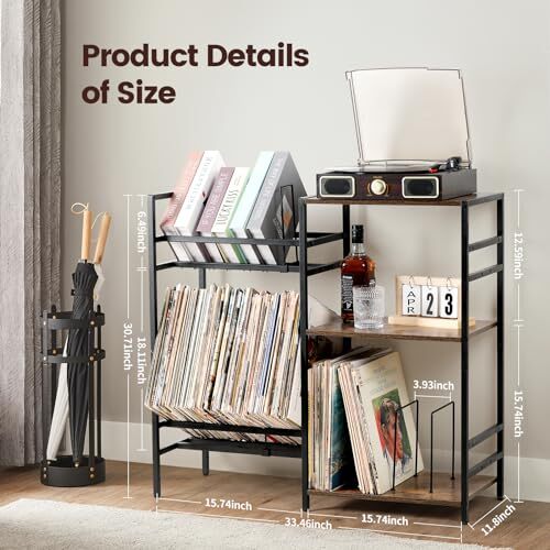 Return Policy Fast Delivery Trusted seller Record Player Stand with Vinyl Storage, 3-Tier Record Player Table Storage Up to 240 Albums, Large Turntable Stand Holds with Metal Frame, Record Cabinet for Living Room with Vinyl Record Holder Product Description [Multi-function Record Player Stand] : This 3-tier record player table with vinyl storage can be used to store record player, albums, speakers, books, magazines, CDs and collections. It meets your different storage needs. On the top of turntable stand, it is suitable for various sizes of record players.The record player table Side shelf and bottom space is enough for vinyl record storage and others. [Large Record Player Stand with Storage]: If you enjoy collecting different record vinyls, this would be an ideal record player table with album storage. The other side of additional record storage allows to place more vinyls. Also, you can separate them according to demand. This record player table can not only store your Phonograph record, but also store your favorite books and magazines, which is very powerful. [Solid And Sturdy]: The record shelf is made of strong wooden board, thicker iron, and adjustable feet .We adopt the high-quality material, which is friendly touch, durable, sturdy and secure. It is perfect choice to having this record player stand for your record player and vinyls. Product dimensions: 33.4"(L) x 31.8"(H) x 11.8"(W) [Fit For Various Scenarios]: Not only can be used as vinyl record storage cabinet, vinyl holder display shelf, but also nightstand, side table, end table in living room, bedroom. The retro wood texture shows mid-century style,The two-layer polyethylene record storage rack can accommodate more records or books.It matches kinds of scenarios. [Well-packed & Easy Installation]: vinyl record holder Making it easier to complete the installation, the turntable stand comes with step-by-step instructions and all marked tool parts.If you have any questions about our product, please feel free to reach out. We will always try best to service our customers. Shipping Returns Payment Shipping Shipping is FREE to all addresses other than APO/PO boxes in the lower 48 states. All our stock ships from US-based warehouses. Shipped via USPS or UPS (depending on location and package weight) Unless stated otherwise, all orders will ship within 24-72 hours of your payment being processed. Check our feedback to see the great reviews of FAST shipping we offer. Returns Seller does not accept returns Payment We currently accept payment via eBay managed payments only. Once payment is cleared, we will dispatch your shipment within 1-3 business days. Please refer to the "Shipping" tab for more information regarding shipping speed to your destination.