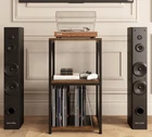 Y&M 3-Tier Record Player Stand with Vinyl Storage, Standard, Brown Product Details Material: Wood, Iron Color: Brown Special Feature: Space Saving Product Dimensions: 11.85"D x 15.94"W x 30.91"H Shelf Type: Tiered Shelf 3 Tiers Record Player Stand: Besides being a stand for your turntable, the table helps keep your precious vinyl records well-organized. The second and third tier can easily store up to 150+ albums in total. The designated compartments or shelves allow for convenient categorization based on genres, artists, or release years. This feature ensures easy access to your records and enables you to maintain an orderly collection Versatile Usage: Measuring 11.85(D) x 15.94(W) x 30.91(H) inches, this versatile stand functions as both a record player stand and a spacious side table or media console, ideal for small spaces. It offers ample storage for speakers, books, or other accessories and is a perfect addition to the living room, study, bedroom, or office Sturdy & Stylish Design: The end table is made from high-quality wood and metal, this table is built for durability. It features 4 adjustable foot pads to customize the height and protect floors from scratches, ensuring stability and style even with frequent use Aesthetic & Practical: This record player table combines vintage charm with modern accents, enhancing any room's décor. The open second layer offers easy access to snacks, books, or other items, while the third layer’s iron wire frame and U-shaped support keep your vinyl records secure Easy Assembly: Easy Assembly: The vinyl record storage comes with clearly numbered parts, detailed instructions, and all necessary hardware, ensuring a quick and hassle-free assembly process. If you have any questions about assembly or stand, please contact us for support and solution