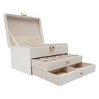 This 3-tier watch and jewelry box is a stylish and practical storage solution! The sleek white PU exterior and soft velveteen lining keep watches, bracelets, and accessories safe while adding elegance to any dresser. The sturdy zinc alloy frame and smooth drawers make it durable yet easy to use. Perfect for organizing daily essentials without clutter—great for both men and women. Love the compact size and modern design!