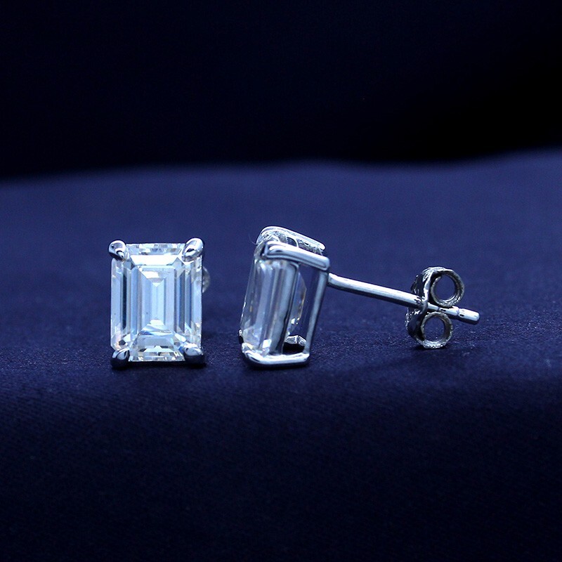 DESCRIPTION 3ct Stud Earrings Solitaire Emerald Cut Moissanite 18K Solid White Gold Details :- Type: Earrings Style :Stud Main Stone: Moissanite ( MOISSANITE PASSES DIAMOND TESTER TEST ) Main Stone Shape: Emerald Main Stone Creation: Lab-Created Cut: Excellent Total Carat Weight (TCW): 2.80 ct to 3.10 ct range Earrings Specifications: Metal Type: White Gold Purity: 18k Closure: Push Back Diamonds vs Moissanite Is a moissanite diamond a real diamond? No. Moissanite and diamond are two different gemstones! While they look similar, there are ways to tell them apart. The biggest differences between moissanite vs diamond are amount of sparkle, cost, and reflection. Diamonds vs Moissanite, Brilliance: Moissanite is actually Higher brilliant than a diamond! Brilliance, which refers to a stone’s ability to reflect white light, is a good measure for how much a gemstone will ‘sparkle’. Moissanite’s brilliance is higher than diamond’s due to its higher “refractive index” (Diamond’s is 2.42, whereas Moissanite’s is 2.65). This is a technical term for how much a gemstone bends light. Moissanite bends light a lot, meaning light bounces around more, giving it max sparkle! In addition, moissanite has a higher dispersion than a diamond, too. So, in addition to your moissanite giving off more white sparkle, it will actually reflect more colored sparkle (“fire”), too. In fact, your moissanite will look like a firework next to a diamond. Does Moissanite lose its sparkle? No! Moissanite stays super sparkly for its whole life. Because of its superior hardness and great refractive index, Moissanite stands the test of time. Unlike a CZ (a less beautiful diamond simulant), you never have to worry about Moissanite becoming dull, losing its brilliance, or getting foggy. It will be beautiful and bright forever! Can you tell moissanite from diamond? Yes, if you look closely. Moissanite’s extra bling and extra reflection can separate it from diamond. While diamonds have equal amounts of white and rainbow sparkle, Moissanite’s rainbow sparkle exceeds its white brilliance. Moissanite’s unique double refraction can also separate it from diamond, if you know what to look for: Diamonds vs Moissanite, Reflection: Diamond is singly refractive, whereas Moissanite is doubly refractive. This means that if you look through the side of a Moissanite, you may see double! In Forever One, this feature is not noticeable unless you know to look for it, and look very closely SHIPPING Tracking will be provided when it becomes available. Domestic delivery may take up to 1 week. It all depends on the local office. Once the order leaves our location, we have no control Plated delivery times. Buyers are responsible for all customs, duties and taxes for your respective countries. Delivery times for International Shipping will vary. California Buyers Pay 9.0% Tax on all orders. case auto open by eBay. Kindly note We do not offer any combined shipping discounts, But if the purchase are more then 5 products. PAYMENT Please sent the payment to us within 8 days after the auction has ended, or you will have unpaid case auto open by eBay. RETURNS Returns are accepted. Item must be returned in unworn and resalable condition. We will only issue a refund for the purchase price, excluding any shipping fees. If we are at fault, we will provide a full refund. Buyer is responsible for all return shipping costs. FEEDBACK Please do not leave a negative feedback as a way to communicate. Any rating given to a seller can neither be changed nor modified. So better communicate for faster resolution to any disputes. If you have any concerns regarding your purchase, please contact us via eBay Message, we assure you that a satisfactory resolution will be reached. Please help us maintain a 5 Star DSR rating in all 4 rating categories, if you feel otherwise, please let us know how we can score a perfect rating from you before you rate us. Thank you for shopping with us!! Have a nice day