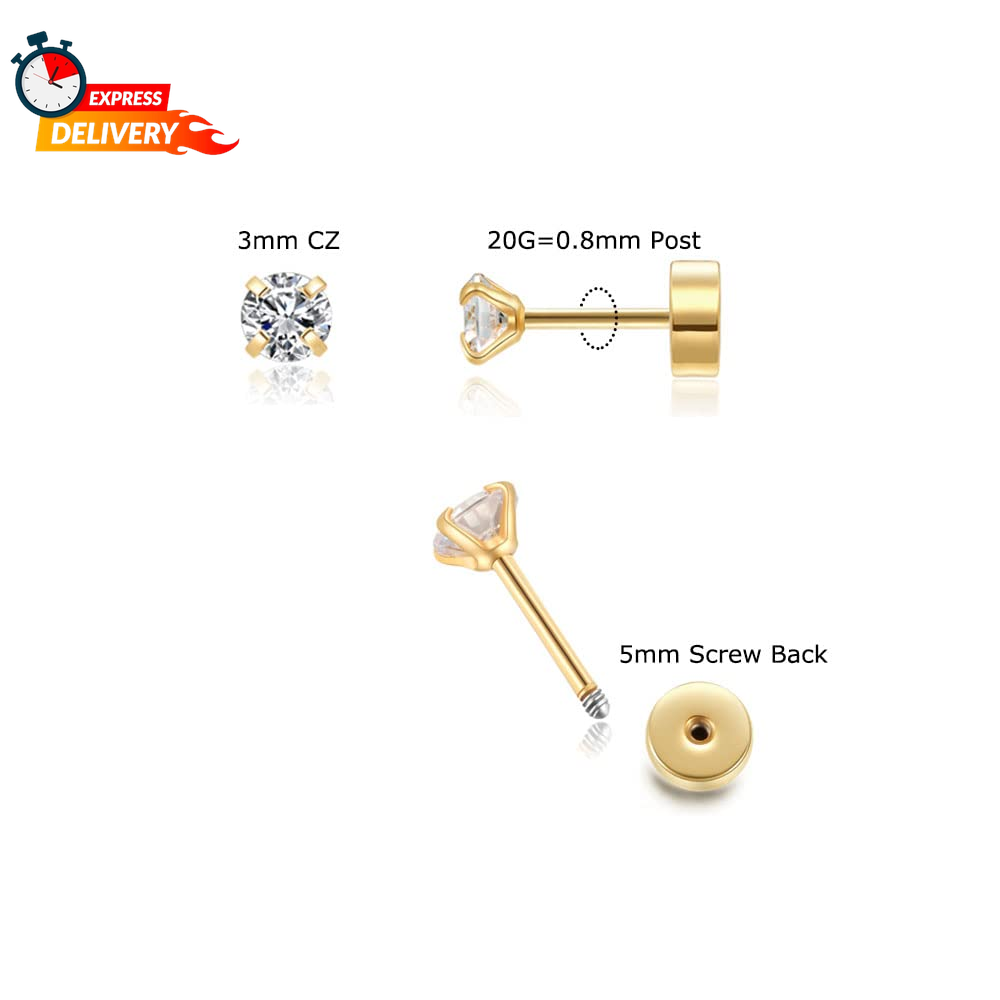 These tiny gold-plated CZ studs are perfect for any piercing! The screw-back design stays secure, and the 3mm sparkle adds just the right amount of shine. Super comfortable for daily wear, and the gold finish looks high-end. Great gift for anyone who loves dainty, elegant jewelry!