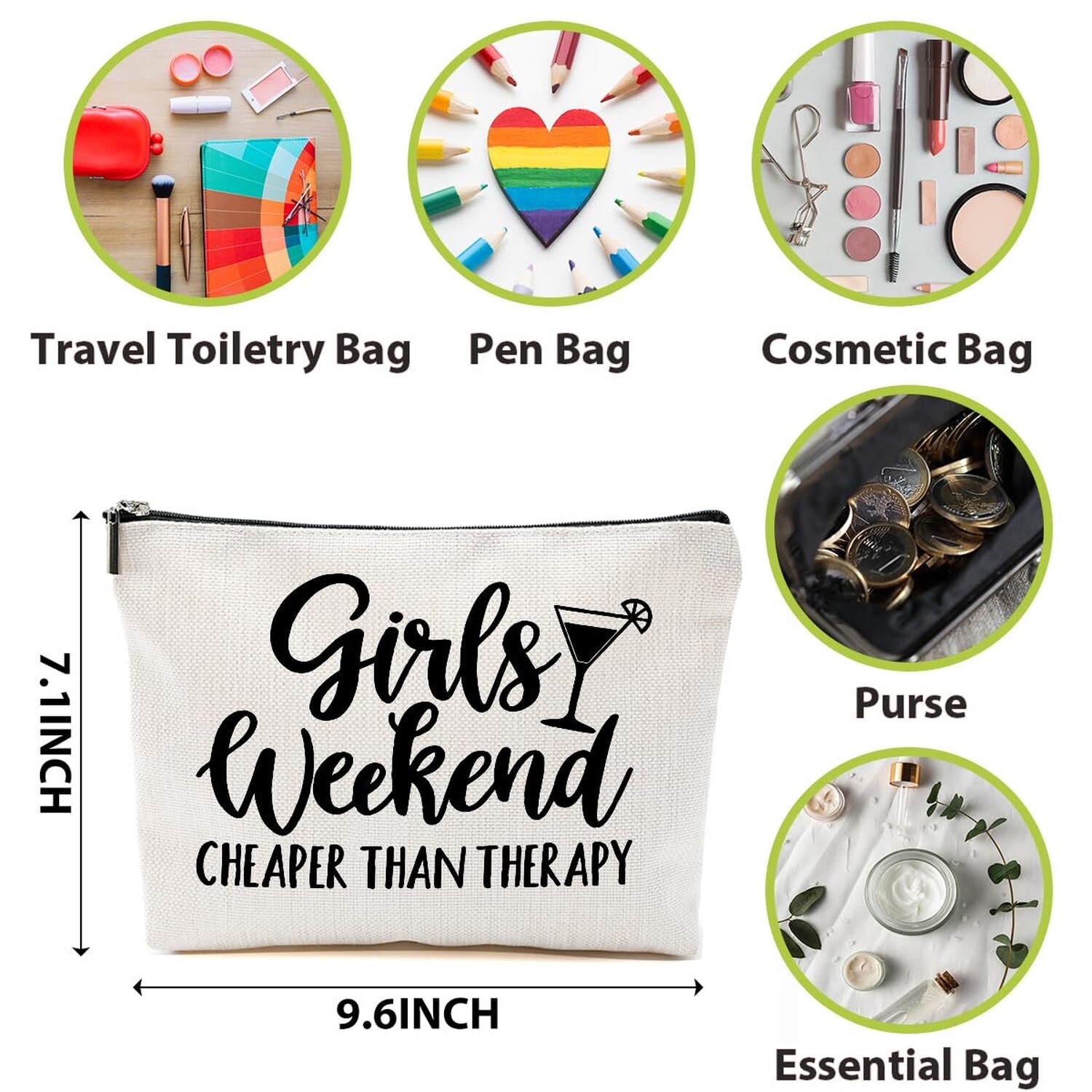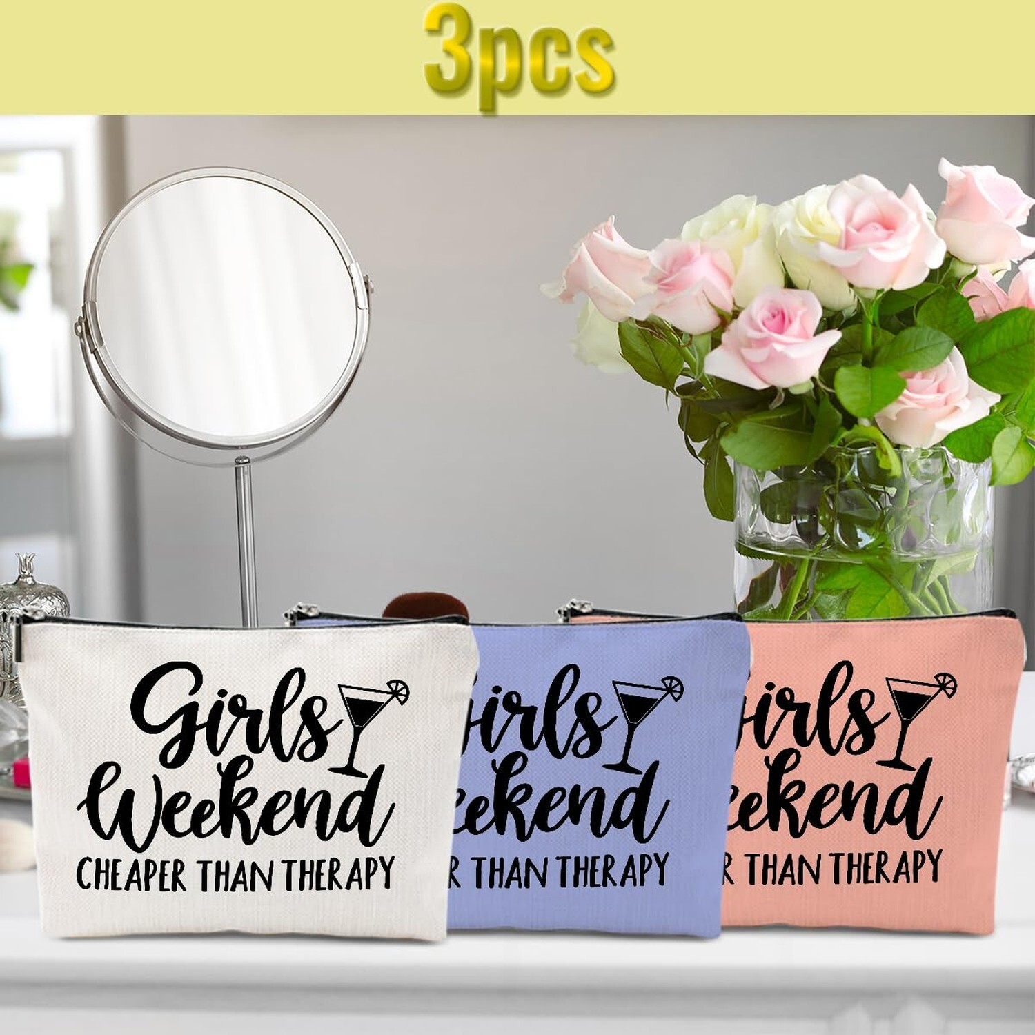 3 Pcs Girls Weekend Gifts, Girls Trip Gifts Favors Travel Gifts Funny Makeup Bag, Weekend Bag Cosmetic Bag, Friendship Gifts for Women Best Friend Bride, Graduation Wedding Gifts Toiletry Bag Product Details Color: 3 Pcs Girl Weekend White Blue Cinnamon Brand: BQXH MPN: Does not apply UPC: Does not apply EAN: Does not apply Product Dimensions: 9.6 x 7.1 x 0.1 inches Item Weight: 3.2 ounces Department: Unisex Adult Manufacturer: BQXH Country of Origin: China Perfect Size and Large Capacity: Our makeup pouch has a portable size of 9.6 x 7.1 x 0.2 inches. The makeup pouch is roomy, portable and compact to carry, and has large capacity to hold all your daily cosmetics. High quality: The travel makeup bag is made of cotton and linen fabric, which is stain resistant, easy to clean and comfortable to feel. The sturdy, smooth zipper makes it easy to securely place items, not cheap and flimsy. Multi-functional and portable: makeup bag can not only hold cosmetics, but also be used as a toiletry bag, storage bag, make up bag, travel bag, cosmetics bag, skincare bag, zipper pouch, travel pouch, etc. Light weight, suitable for travel, office and daily use. This makeup bag is essential for travel. Ideal gifts: Our cosmetic bag is suitable for all women, including wife, sisters, nieces, friends, mom, bestie, , grandma, colleagues,aunt, nurse,coworker, leader. With the toiletry pouch, you can show your love and care to family and friends on holidays, birthdays, wedding anniversaries, Thanksgiving, Valentine's Day, retirement, party, graduations, Mothers Day, Nurse Day, Boss Day, Christmas, etc. Brilliant design: Our makeup bag is suitable for women of all ages, it has a variety of styles, including fun, inspirational, elegant, lovely patterns for you to choose, to give you a beautiful visual enjoyment and experience. Our cosmetic bag is made of high quality cotton linen that is resistant to dirt and wear, and the makeup bag is a great gifts for mom, wife, daughter, friends, grandma, sister, besties, auntie, , cousin, niece, godmother, nurse, lawyer, boss, teacher, coworker for teacher appreciation, Mothers Day, Nurse Day, Boss Day, Valentine's Day, birthday ,Independence Day. It also can be used as a travel organizer, toiletry bag, travel pouch, makeup pouch, makeup organizer bag.