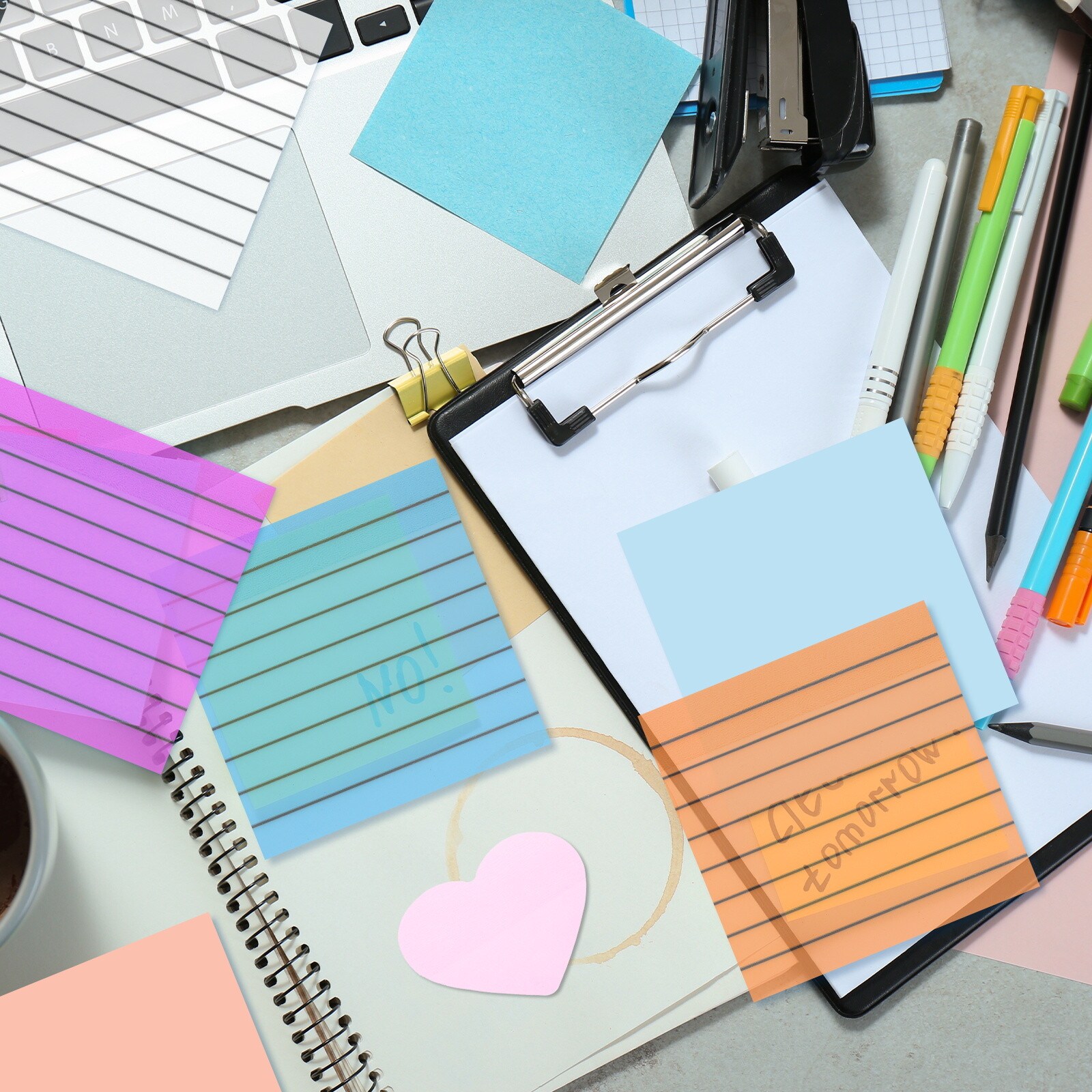 3x3 Inch 600-Pack Transparent Sticky Notes in 6 Colors - Self-Adhesive Memo Pads
