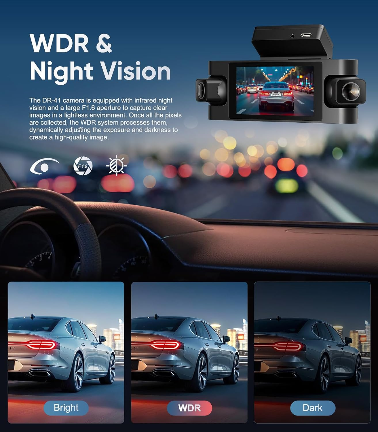 Store New Arrivals Add to Favorite View Feedback Contact 4 Channel Dash Cam Front and Rear inside Left Right, Dash Camera for Cars,Car Camera with 3" IPS Screen,Night Vision,Included 64GB Card,Support Optional GPS, 24/7 Recording Parking Mode Description 【4 Channel Dash Cam, Front Rear Left and Right】 This 4 Channel Dash Cam has 4 cameras, all capable of recording FHD 1080P video . It can capture the front, rear, left, and right sides of the vehicle simultaneously. The front 3 cameras can adjust the shooting angle so you can capture more details as you like. It can easily cover 360 degrees, ensuring that there is no dead angle around the car. This provides a full range of video evidence of your car to defend your rights. 【Loop Recording & Crash Lock】To ensure endless loop recording, the 4 channel dashcam automatically deletes the oldest unlocked footage when the memory card reaches its maximum capacity. In case of a collision, the dash cameras will automatically lock the currently recorded footage as evidence. Locked files will not be overwritten by loop recording. 【Quality Night Vision &WDR】This dash camera for cars adopts an exceptional optical lens with an ultra-large F1.5 aperture and 6 layers, The 3 cameras on the dash cam body are equipped with infrared lights.and is equipped with WDR technology to capture important details clearly under low light conditions. 【Support GPS Logger】This car dash camera is available with the optional Bundles GPS module(Asin:B0BZHVK8PY) that accurately pinpoints the vehicle's location, speed (in KMH/MPH), time, and routes on a map in real-time. By installing and using the GXPlayer, the vehicle's path can be visually tracked, while the coordinates ensure that the exact location of any incident is recorded. This is critical for roadside assistance and insurance claims. 【24/7 Parking Mode】The DR-41 dash cam has a specially designed 24-hour parking mode that requires the additional purchase of a hardwire kit(Asin:B0BZL9WY5T). After it is installed and powered by the hardwire kit, when the car is turned off the dash cam will automatically start the time lapse recording mode at 1 second per frame, letting you know any events that happened after you left, and then return to the normal recording mode the next time you start the car. 【Customer Service Support】 We promise to replace the product with a new one if there is any product quality issue within 6 months, and repair the product without any charge within 1 year. Seventour provides professional after-sales support, and We have specialized after-sales phone service to solve your problems. Product Description Loop Recording Dash cam Loop Recording automatically overwrites the earliest file and record over it when storage fills up (Locked videos will not be overwritten). G-SENSOR When G-sensor and Parking Monitoring are turned on, when vehicle vibration or collision is detected, it will automatically turn on and record 30 seconds of video, then turn off. (Note: Adjust the middle sensitivity of the gravity sensor to prevent files from being easily locked and micro SD card full.) Supercapacitor The built-in supercapacitor of the dash cam works more stably at high and low temperatures, adapts to complex high and low temperature environments, and has a longer service life. Power can be supplied quickly in case of power failure to ensure complete data preservation. Included 64G micro SD card Dash cam supports up to 256GB micro SD card. a 64G micrao SD card is included in the Box . In addition, the attached USB2.0 card reader makes it easier for you to view the recorded video. 24/7 Parking Monitoring mode When the voltage drop cable is powered, Dash cam parking monitoring is turned on, When the car is turned off, the ACC enters the 1 second 1 frame time-lapse recording state after 5 seconds of power failure. Until the car starts again, Dash cam enters the normal recording state. *Need to buy a hardwired kit (Asin:B0BZL9WY5T) GPS information display When you open the video of the micro SD card on Dashcam in GXplayer through the PC, you will be able to view: GPS location, Google map route, Speed during driving in the video. *Need to buy a GPS module (Asin:B0BZHVK8PY) ABOUT US Welcome to our Ebay store! FAST FREE SHIPPING ON ALL PRODUCTS! Please look through our selected quality items to see if you can find what you are looking for or to discover new and exciting things. Our main goal is to bring you the best services which includes quality products at the best prices, fast free shipping and great customer support ! SHIPPING We ship to the Lower 48 States only (Does NOT include Hawaii or Alaska) We cannot ship to PO Boxes/APO's We cannot combine shipping. No Local Pickup. NOTE: we ship from multiple locations We offer FREE STANDARD DELIVERY 2-8 business days within USA. The item will be shipped directly from our supplier. RETURNS We have a NO returns policy on this product , but we will make sure you receive it in perfect condition( in case of damage on arrival let us know within 2 days for a solution/replacement). PAYMENT We accept PayPal. CONTACT US This page content is yet to come Please ad us to your favorite seller and visit again later Thank You CUSTOMER SATISFACTION If you have a question about a product not otherwise answered in the item description, please contact us via eBay messages first and allow us the opportunity to help you. Your satisfaction is our #1 priority ! In any situation before opening a case please do contact us for a resolution!!