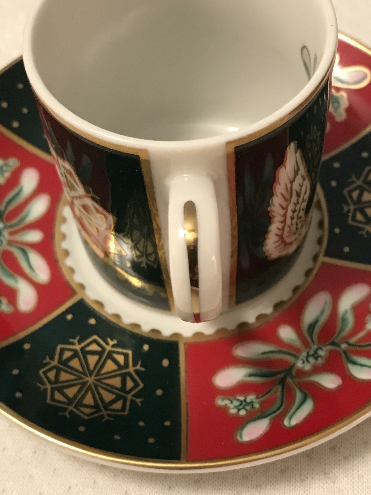 Home4 Neiman Marcus Porcelain Christmas Espresso Cups / Saucers New Open Box Luxury