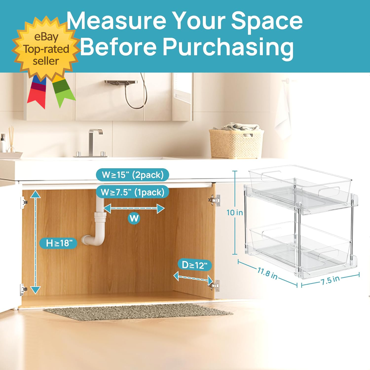 Store New Arrivals Add to Favorite View Feedback Contact 4 Pack Bathroom Organizer 2 Tier Clear under Sink Organizers Vanity Countertop Description Style 4 Pack Capacity 15 Pounds Unit Count 4.0 Count Color Transparent Product Dimensions 11.8"L x 7.5"W x 10"H Material Plastic Item Weight 7 Pounds ESSENTIALS STORAGE PREFERRED: The multi-purpose organizer storage is a good helper to keep your vanity or bathroom countertop tidy. It can also be used as under sink organizer, kitchen organization, pantry organizer, refrigerator storage, cabinet storage. Perfect for storing cosmetics, toiletries, perfumes, cleaning supplies, snacks, bottles, spice jars. EASY TO INSTALL: No tools required, setup is easy and takes only a few minutes. You can effortlessly assemble a stable pull-out bathroom organizer. (Please note: be careful not to scratch your hands when inserting the stainless steel tube into the slot of the frame.) UNDER SINK ORGANIZER AND STORAGE: The overall dimension of the bathroom sink organizer is 11.8"L x 7.5"W x10"H, which comfortably shares space with the pipes in limited spaces, maximizing the vertical storage space under the sink, and saying goodbye to cluttered spaces. SLIDE-OUT DRAWER & STABLE STRUCTURE: The 2-tier storage organizer features two pull-out drawers with tracks to prevent swaying during use and built-in handle makes it easily to access hard-to-reach things. In addition, the bottom and top is fitted with 8 silicone non-slip pads for ensuring stability when pulling the organizer drawer out. DURABLE & VISIBILITY : Bathroom organizer made of durable PET material and connected by four stainless steel support tubes, and will not rust when placed under sink. Stacked in two layers, the top drawer can support up to 15LB, and the clear design allows you to easily find what you need. Saving time and keeping everything organized.. Tips:This set supports four 2-tier organizers. Mixed configurations (e.g., 3-tier units) require additional steel rods. ABOUT US We offer the best prices around on high quality products. Our E-store includes media such as books, movies, music and games while offering electronics, toys, sporting apparel, clothing, tools, general home, garden items and more. SHIPPING We are always working hard to ensure your package arrives as soon as possible. Please understand that some factors like weather, high postal traffic, and the performance of shipping companies are outside of our control. We offer free shipping to the lower 48 states and ship within 2 business days of payment, usually sooner. We do not accept P.O. Boxes. Please provide a physical address. For shipping outside of the continental USA, we only use eBay's Global Shipping Program.The item is shipped to KY and then sent to the rest of the world. International customers are responsible for all duties and taxes. Continue to check out in order to calculate costs for shipping the item to your country. Messages regarding eBay's Global Shipping Program MUST be directed at eBay EXCLUSIVELY. RETURNS We offer a 30-Day Return Policy on items which you are not completely satisfied with. You have the option for a full-refund or an exchange of the item. No returns are available on items shipped outside of the USA. PAYMENT We accept PayPal. CONTACT US This page content is yet to come Please ad us to your favorite seller and visit again later Thank You CUSTOMER SATISFACTION We try our very best to make sure every customer is completely satisfied. If there's a problem, message us! We're happy to help.