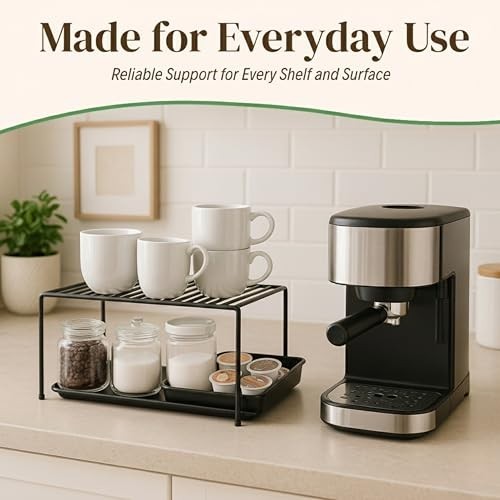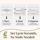 Set of 4 Instant Kitchen Shelf Organizer Transform your kitchen and maximize storage with our versatile shelf organizer set. Perfect for creating hidden shelves, these organizers are ideal for bins, baskets, and other storage containers. Key Features: Multi-Purpose Use: Ideal for corner cabinets, kitchen countertops, tabletops, fridges/freezers, medicine cabinets, spice organization, and office desk shelving. Versatile Storage: Perfectly organizes spices, dishes, small appliances, baby items, pots, pans, soup cans, soda bottles, mugs, bread, snacks, and more. Compact Design: Measuring 10.5 inches long x 5 inches wide x 5.25 inches high, it fits seamlessly into mini spaces. Ideal for Various Settings: Great as a trailer pantry organizer, locker shelf, spice rack shelf, drawer divider, and more! Benefits: Enhanced Organization: Keep your kitchen tidy and clutter-free with easy access to all your essentials. Space-Saving Solution: Maximize every inch of your cabinet space while maintaining a clean look. Durable & Reliable: Built to last and withstand daily use in busy kitchens. Elevate your kitchen organization game with this essential set of shelf organizers. Enjoy a more functional and stylish kitchen space today!