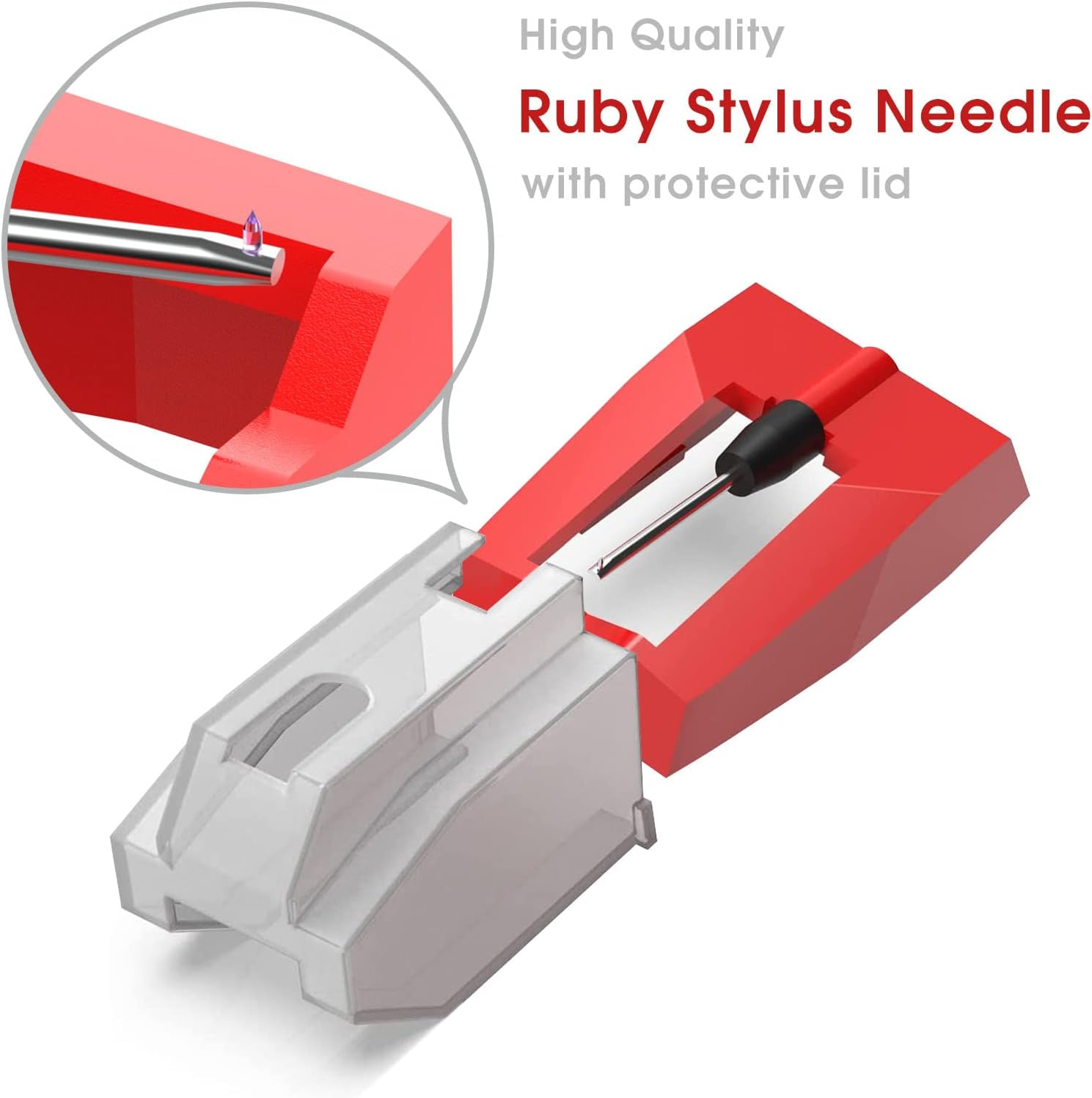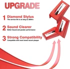 [ Ruby Ceramic Record Player Needle] There are 4 single record player needles with diamond stylus in the package. It can play 33 1/3, 45, 78PRM records player phonograph machine. [No Skip Design&High Sound Quality] The upgraded turntable cartridge needle has a conical diamond stylus that leads to a strong tracking ability. Channel balance (at 1 kHz), below 2 dB, two-channel (stereo), providing you with more accurate and pure stereo sound. [Widely Application] It is a nice record player needle replacement for most record player existing in the market now. Eg: Anders Nicholson, Boytone, Capehart, Crosley, CROWN, Fisher, GPO, GRACE DIGITAL, ION, Jensen, Leetac, Pfanstiehl, Radio Shack, Soundesign, Sanyo, THOMAS PACCONI, TechPlay, Teac, Toshiba, York YORX. If you do not confirm whether it works with your turntable or not, welcome to contact with us firstly. [Easy Installation] This vinyl turntable needle replacement stylus is easy to install. No need tools. You can easily replace turntable needles for vinyl records by yourself anytime.High-Grade ABS Plastic and Aluminum arm,With conical diamond Ceramic needle design make sure for long playing life and perfect rendition of voice and music. [Intimate Packed] Each record player needle will be covered with a white plastic cap to protect it from any damage and packed with a durable box to ensure safely delivery. If you are not satisfied with the needle, welcome to contact with us. We’ll find a good solution for you. The record player needle compatible with many record player:Crosley NP1, NP6, CR248, CR27, CR43, CR44, CR46C, CR48C, CR49B, CR49TA, CR49TW, CR50TW, CR53,CR67, CR69, CR70, CR73, CR77, CR78, CR79, CR704, CR711, CR6019A, CR8005A, CR7008A, CR6019A, CR8005A, G6082 ION,NOT work for TT USB. But for iCT05RS, iCT09RS, Quick Play LP, Power Play LP,Quick Play Flash, Contour LP, Vertical Vinyl, iLP, Archive LP, Forever LP, Live LP, Pure LP, iLP, Max LPInnovative-Technology ITRR-501, ITRRS-300, ITVS-750Victrola Nostalgic and suitcase turntable playerJensen JTA222, JTA230, JTA300, JTA380, JTA410, JTA420, JTA450, JTA460, JTA475,JTA222NDL Boytone Musitrend 1byoneTyler Pyle PTCDS8UBT, PLTT21BT, PTCD4BT, PTTCSM70BT, PVTT15UBT Teac LPR550-USB Electrohome SylvaniaOther brands do not list here, please consult us before you order!Package IncludesCeramic needle x 4