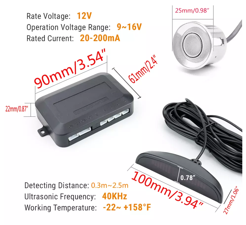 Features: 4 Sensor System, Double CPU And Advanced Chip-Set For Enhanced Coverage And Detection. With Digital Colored LED Display (Number & Light). Help To Prevent Dangerous And Costly Collisions. Help To Provide Increased Safety For Passengers, Pedestrians And Family Members Who Happen To Be Around The Moving Vehicle. Detect Small Children And Low Walls As Well. Anti-Freeze And Rain Proof. Easy To Install. A Saw Drill Head Included. Specifications: Color: silver LED Display Size: 10 cm x 2.7 cm x 2.0 cm Main Control Box Size: 9.0 cm x 6.1 cm x 2.2 cm Rate Voltage: 12V DC Operating Voltage Range: 9~16V Rate Current: 20~200MA Detecting Distance: 0.3m - 2.5m Ultrasonic Frequency: 40Khz Control Module Working Temperature: -30 To 80 Celsius Degree 4 Parking Sensor Buzzer Reverse Backup Rear Radar Alarm System Kit Led Display Features: 4 Sensor System, Double CPU And Advanced Chip-Set For Enhanced Coverage And Detection. With Digital Colored LED Display (Number & Light). Help To Prevent Dangerous And Costly Collisions. Help To Provide Increased Safety For Passengers, Pedestrians And Family Members Who Happen To Be Around The Moving Vehicle. Detect Small Children And Low Walls As Well. Anti-Freeze And Rain Proof. Easy To Install. A Saw Drill Head Included. Specifications: Color: silver LED Display Size: 10 cm x 2.7 cm x 2.0 cm Main Control Box Size: 9.0 cm x 6.1 cm x 2.2 cm Rate Voltage: 12V DC Operating Voltage Range: 9~16V Rate Current: 20~200MA Detecting Distance: 0.3m - 2.5m Ultrasonic Frequency: 40Khz Control Module Working Temperature: -30 To 80 Celsius Degree Display Working Temperature: -20 To 70 Celsius Degree Packaging Content: 1 X Main Control Box 1 X LED Display Indicator 4 X Parking Sensors 1 X Hole Saw 1 X Power Cable 2 X Double Side Sticker 1 X User Manual Brand Unbranded Universal Fitment Yes Country/Region of Manufacture China Manufacturer Warranty 3 Months Type Parking Sensor Bulb Type LED Rate voltage DC12V Rate current 20mA-200mA Detecting distance 0.3-2.5m Number of Sensors 4 Compatible Vehicle Make Universal Parking sensor for Car, SUV, Truck Connector Color Silver Ultrasonic frequency 40KHz Parking Sensor Position Rear Parking Sensor Kit Operation voltage range 9-16V