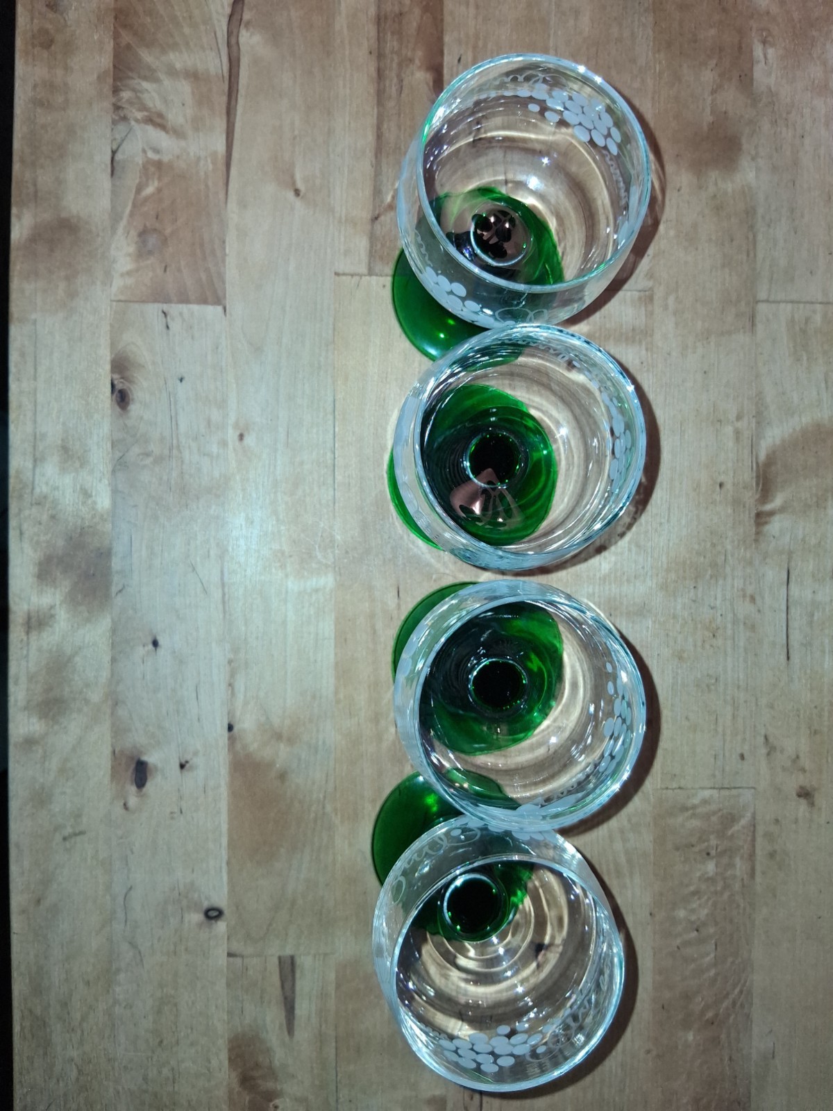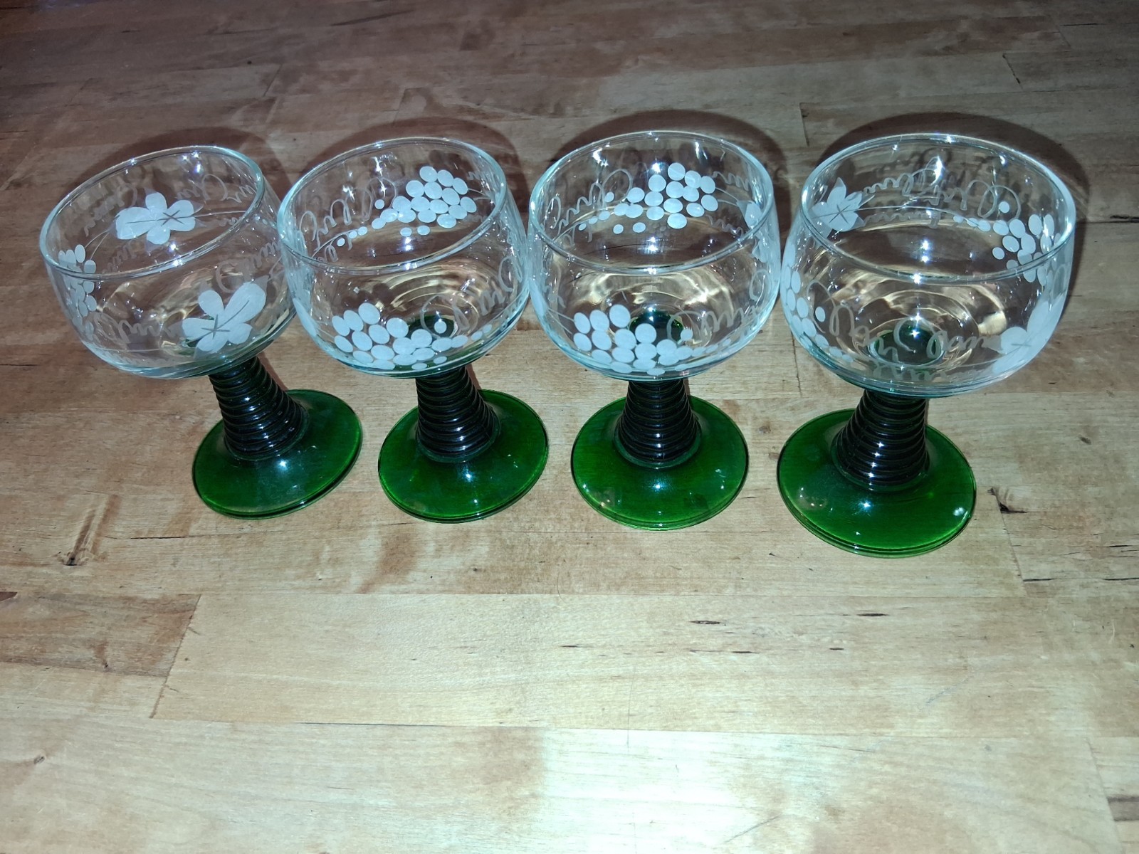 4 Vintage Beautiful Luminarc France Crystal D'arques Green Wine Glasses. These were sitting on display for years. Still In good condition. Very light scratches on green bottom stem can barley tell to my eyes. If anyone needs more pictures feel free to message. Thank you and have a great day!