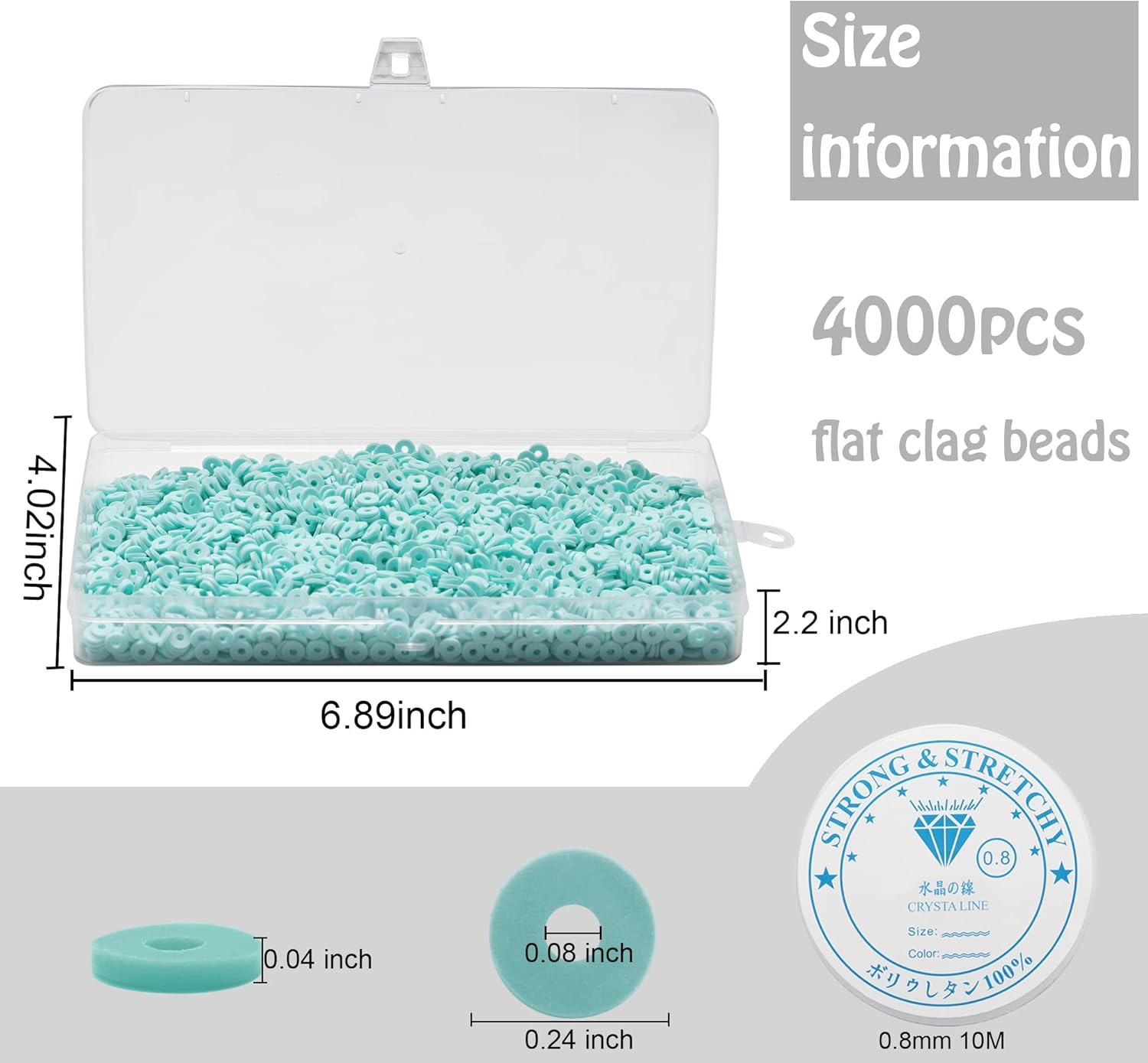 Menu Other Items Feedbacks About Us Contact Us Add To Favorites 4000 Pcs Cyan Clay Beads for Bracelets Making, Polymer Spacer Flat Beads DIY for Jewelry Necklace Earring Making Kit, Preppy Aesthetic Heishi Heshie Thin Disk Beads Assortments Set 6MM [Adequate Quantity] There are 4000pcs pure color handmade clay beads and a roll of crystal beading thread in a clear storage box, so you will not mix them easily,and convenient to use and storage. These flat round beads is great for countless design possibilities, you can use them for jewelry making,bracelets making, necklaces, earrings and other DIY crafts. [Safe Material] Our flat clay beads are made of eco-friendly polymer clay material,which is sturdy and strong, stable in structure, not easy to deform or break, in good texture and workmanship, our crystal string is hard to break than other 0.8mm strings, you can use these preppy beads with ease and confidence, these smooth clay beads will provide comfortable wearing experience for you. [Suitable Size] Our soft disc clay beads diameter is 0.24 inches/ 6 mm, the hole is 0.078 inches/ 2 mm, thin 0.039 inches/ 1 mm, these spacer beads are easy to handle, and you can match shells, chains, rings, lobster clasps to connect with clear craft wire, to make different styles handmade necklaces, ankets, bracelets and earrings. Please understand that there may be slight differences in colors due to different screen displays. [Comfortable to Wear] These premium polymer beads are lightweight and waterproof, no peculiar smell, comfortable wearing, and the color will not change, always maintain bright colors, can be worn at the beach, pool or bathroom. The flat clay beads can create exquisite decorative arts, charms DIY crafts,like phone lanyard, glassware decoration, pendants, waist beads kit, fashionable shoes decor and party decoration. [Wide Applications] These heishi beads are simple ,elegant and eye-catching, suitable for adults, perfect for sunny spring and summer, daily wearring, party, surfer and other occasions., it is a chic gift for lover, friends, family on birthday, or Valentine's Day,these flat clay beads also is a relaxing activity for adults, you can enjoy the fun of DIY time with your family and friends, bringing you a good mood and make you intimate. Product Description Colorful clay beads for your choice Package introduction: 4000pcs colorful handmade polymer clay beads; A roll of crystal line, 10m X 0.8mm 1X Storage Box. We have Red, Pink, HotPink, Orange-Yellow, OrangeRed, Coffee, Wheat, Yellow, Lime, Green, LightGreen, LightSeaGreen, LightCyan, DarkBlue, CornFlowerBlue, DoderBlue, Purple, Violet, LightGray, Black, White and speckled Colors. RD-1-01 is Red, PK-2-02 is Pink, PK-2-03 is HotPink, OR-3-4 is Orange-Yellow, OR-3-21 is OrangeRed, KK-4-05 is Coffee, KK-4-20 is Wheat, YW-5-06 is Yellow, GR-6-07 is Lime, GR-6-08 is Green, GR-6-09 is LightGreen, GR-6-10 is LightGreen, CY-7-11 is LightCyan, BU-8-12 is DarkBlue, BU-8-13 is CornFlowerBlue, BU-8-14 is DoderBlue, PU9-15 is Purple, PU-9-16 is Violet, GY-10-17 is LightGrey, BK-11-18 is Black, WH-12-19 is White. Valueable and Sturdy Crystal Cord Ideal for bracelet making, jewelry making, beading, necklace making and other art craft projects.The string is 0.8mm in diameter, It is hard to break.This bead cord is made of plastic rubber and it is crystal looking, which is strong for use and beautiful looking.The jewelry bracelet crystal string is perfect for bracelet, necklace, bead weaving and other jewelry craft projects. Especially fit for using with other supplies. Clay beads for jewelry making DIY what you like Enough and colorful polymer clay beads, You can use these cute heishi beads for DIY crafts making, Try to use your imagination to discover more diverse combinations, Make your own unique projects.A range of colorful beads can be used for many crafts and gifts, such as necklaces, bracelets, earrings, rings, keychains, anklets, hair braids, phone chains, eyewear chains, other accessories, etc. Warm notes: The clay beads are cut by hand,and quantity counting by manual. Please notice and understand this if the thickness of the clay beads you receive is inconsistent. Some flat beads are more or little less than 4000pcs. The color may exist slight difference due to different screen displays. Item Specification Item model number 0005-CY-7-11 Number of Pieces 4000 Color CY-7-11 Material Clay Item Weight 6.4 ounces Shape Round Size 6MM Product Dimensions 17.5 x 4.02 x 0.87 inches SHIPPING FREE FREE SHIPPING We are always working hard to ensure your package arrives as soon as possible. Please understand that some factors like weather, high postal traffic, and the performance of shipping companies are outside of our control. We offer free shipping to the lower 48 states. We do not accept P.O. Boxes. Please provide a physical address. If you have a problem or question regarding your transaction please contact us immediately. We will work with you to resolve any problem you may have. Thank you