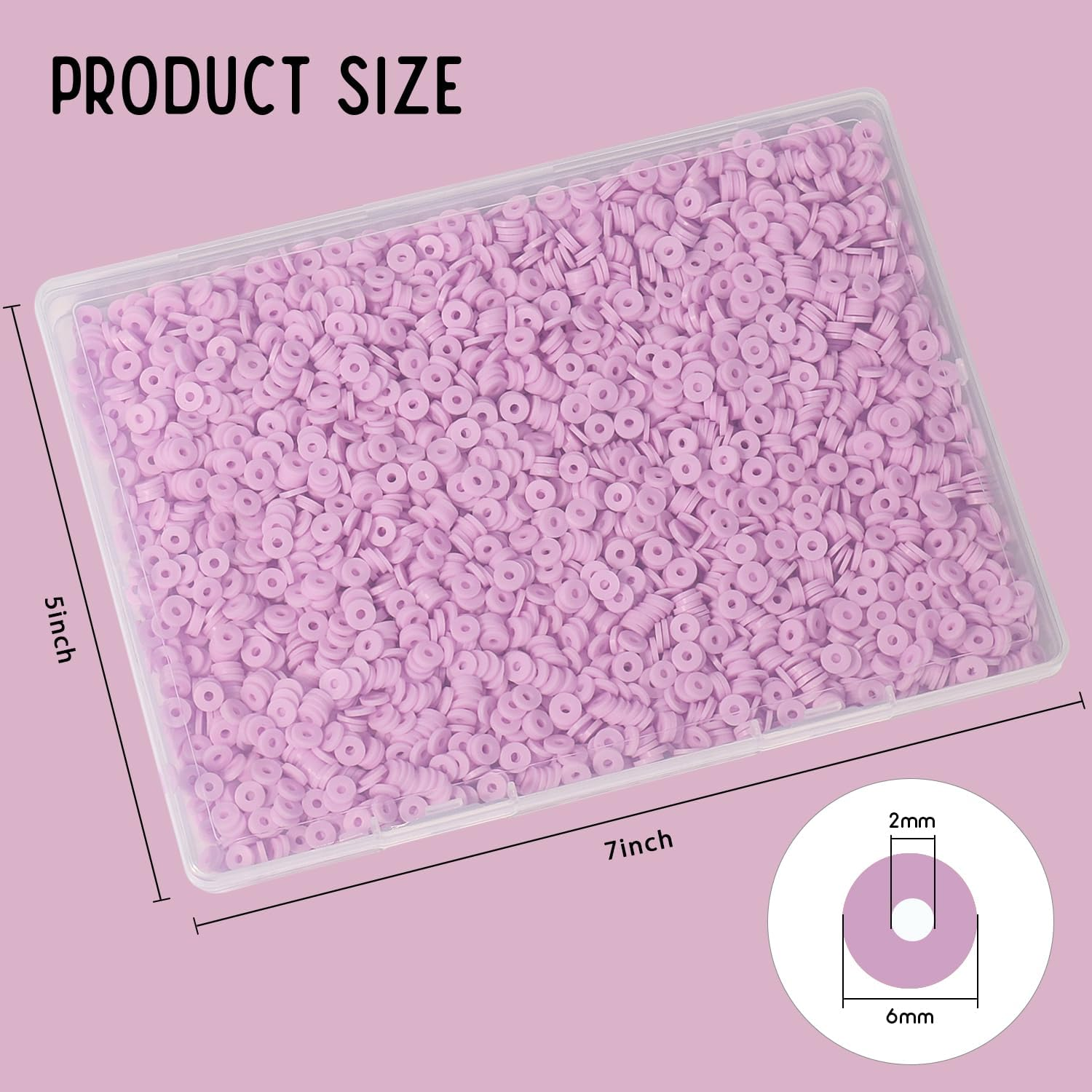 Menu Other Items Feedbacks About Us Contact Us Add To Favorites 4000Pcs Purple Clay Beads Bracelet Making Kit, 6Mm Flat round Polymer Clay Beads Spacer Heishi Beads for Jewelry Making Earring Necklace Material: These vinyl heishi disc beads are made of polymer clay which is a non-toxic, non-irritating and harmless material to human body. And these flat round beads are lightweight, waterproof, bright in color and comfortable to wear. Size & Quantity: Bead Dia: 6mm; Hole Dia:1mm; Quantity: about 4000 pcs clay beads in same color and a roll 0.8mm elastic string were put into one transparent box. Usage: The clay beads are rich in color, no matter what color you pick and how you match them, you can make a exquisite and beautiful handicraft by yourself. You can use these clay beads to make unique earrings, pendents, necklaces, bracelets, anklets, and other DIY crafts, jewelry design, decorations as a gift of Christmas, etc to your friends or family. PERFECT GIFT CHOICE:This clay bead kit is popular gifts for adult who like to express imagination. A meaningful gift choice for birthdays, valentine's day, mother's day, Christmas, thanksgiving day, etc. Whether you're a beginner or an experienced jewelry maker, this kit is suitable for adults alike. VERIFIED BY TRANSPARENCY: We strictly control the quality of the beads to ensure that you can receive the beads without defects. We appreciate bracelet making crafts enthusiast. If you find any problem with our beads, please feel free to contact us. We promise to give you a satisfactory solution within 24 hours. Product Description Item Specification Item model number 4000pcs Clay Number of Pieces 1 Color Purple 4000pcs Material Polymer Clay Country of Origin China Item Weight 1.6 ounces Shape Round Size Small Product Dimensions 2 x 2 x 0.1 inches SHIPPING FREE FREE SHIPPING We are always working hard to ensure your package arrives as soon as possible. Please understand that some factors like weather, high postal traffic, and the performance of shipping companies are outside of our control. We offer free shipping to the lower 48 states. We do not accept P.O. Boxes. Please provide a physical address. If you have a problem or question regarding your transaction please contact us immediately. We will work with you to resolve any problem you may have. Thank you