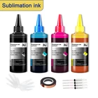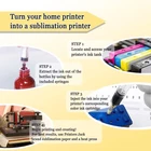 Product Descriptions : 【 Widely Compatible 】 Sublimation ink suitable for EcoTank ET-2720 ET-2710, ET-2760, ET-2700, ET-3700, ET-3710, ET-3760, ET-4800, ET-4850, ET-5800, ET-5850, ET-80,ET 7750, ET-4760, ET-15000, ET-16600, ET-16650, etc. 【 Premium Quality 】 This sublimation ink offers the most vibrant intense colors, rich colors, can make the pattern more realistic and interesting. Extremely stable, does not appear cracked or faded. Don't worry about clogging, make printing smoother. 【 Multipurpose 】 This thermal transfer printer ink can print all kinds of beautiful designs on different materials, such as T-shirts, mugs, cloth bags, pillows, mouse pads, boxes, flags, etc. Use your imagination to DIY a beautiful gift for your loved ones. Package Includes: 1 Bottle x 100ml Black Sublimation Ink. 1 Bottle x 100ml Cyan Sublimation Ink. 1 Bottle x 100ml Magenta Sublimation Ink. 1 Bottle x 100ml Yellow Sublimation Ink. 1 x Disposable Gloves 4 x Syringes 4 x Needles 1 x Adhesive Tape Compatible with printer models: WF7610 WF3640 WF3620 WF3540 WF3520 WF7110 WF7010 WF7710 WF7720 WF7620 WF2750 WF2630 ET 2750 ET 2650 ET 3750 ET 4750 ET 3700 etc. Recommended transfer settings for optimal performance on polyester. Operating temperature: Room temperature 65-80°C. Transfer temperature: 200°C. Pressure:25PSI Dwell time: 60 seconds. Tips : 1. Storage temperature: 65-80°C. 2. Can be used on dark fabrics (including black), but should be used with sublimation paper for dark colors, polyester fabrics or other products with coating. 3. Heat press setting will vary (including temperature and time) when substrates are different.