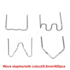 Specification: 400* Standard Pre-cut Hot Stapler Staples For Car Bumper Welding Gun Plastic Repair Tool Kit *100% Brand new and high quality *Used to repair bumper cracks *Stainless steel, please unscrew when using ramp clamp *Color: Silver(As Pictures Show) *Material: Stainless Steel *Diameter: 0.8 mm&0.6mm *Type: Pre-cut *Shape: Flat Stainless Steel Staples,Wave Stainless Steel Staples,Corner Stainless Steel Staples,Outside Corner Stainless Steel Staples *100% Brand new and high quality *Used to repair bumper cracks *Stainless steel, please unscrew when using ramp clamp *Material: Stainless Steel *Shape: Wave Type: Hot Staples For Car Bumper Fender Welder Feature : Hot Staples are designed for Bridging cracked areas together where added strength Item including: 100x 0.8mm Pre-cut Flat Stainless Steel Staples 100x 0.8mm Pre-cut Wave Stainless Steel Staples 100x 0.8mm Pre-cut Corner Stainless Steel Staples 100x 0.6mm Pre-cut Outside Corner Stainless Steel Staples (HOT STAPLES 100pcs per Bags.) Note:Doesn't come with the heat gun.