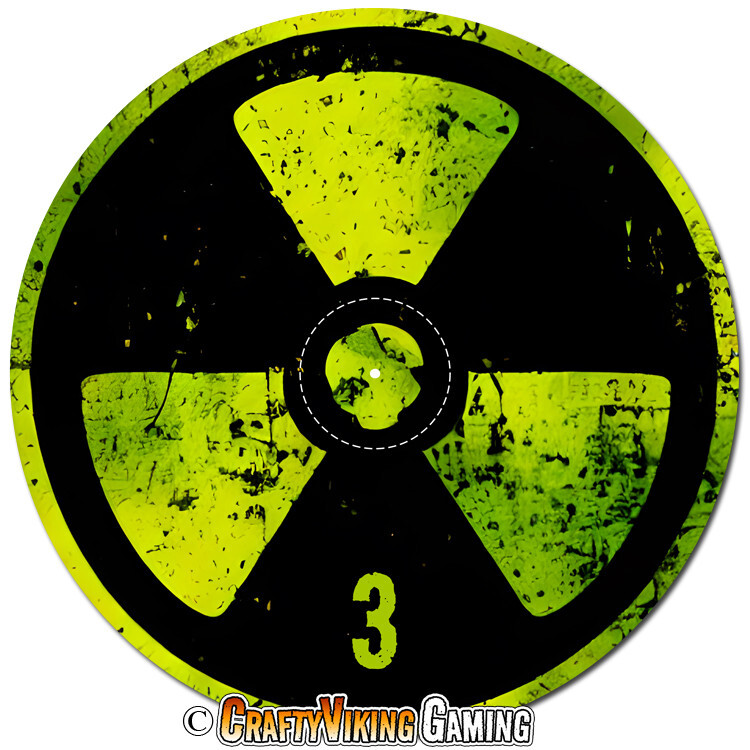 Nuclear Waste Set of 6 objective markers for Warhammer 40K and Age of Sigmar 4th Edition . This set features a Toxic Green Nuclear Radiation sign. Numbered 1-6 40 mm (marked center circle) for simple measuring plus 3 inches to the edge Total diameter 192 mm or 7.57 inches 2 mm thin neoprene (mouse-pad) material Non-slip rubber backing Enhance your gaming experience with these high quality attractive objective markers. No more guessing if a model is in range. Thanks for shopping & happy gaming!