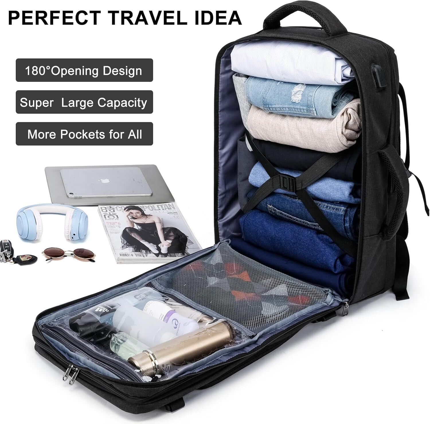 Travel Backpack for Men and Women, 40L Extra Large Flight Approved Carry on Backpack with Sturdy Zipper, 17.3 Inch Laptop Backpack with USB Charger Port & Luggage Sleeve, School Backpack, Black ✈EXTRA LARGE CAPACITY: Size: 19*13*8 Inch. The spacious main compartment with straps to secure travel supplies, and with Wet and Dry Pockets, one separate laptop compartment with soft padding for a 17.3 inches and below laptop, Outside the main compartment, a front easy access compartment, Mesh pockets are located on the sides to keep your belongings organized and easier to find. It's perfect for 3-7 days traveling, business, camping, or cruises. ✈FLIGHT APPROVED CARRY ON BACKPACK: TSA-Friendly function is exclusively designed for airplane flight travel. At Checkpoint, unfolds the laptop travel backpack freely 90-180 degree and the laptop stays flat without taking it from the bag, making it getting through airport security checkpoint more easily. The laptop travel backpack is large enough for hiking, vacation, travel, weekend getaway, overnight trip. ✈HUMAN ENGINEERING DESIG: Padded And Breathable mesh back panel of this computer bag design help for the air convection, ventilation and heat elimination. Breathable and adjustable shoulder straps relieve the stress of shoulder. In addition, the chest strap prevent the shoulder strap from slipping effectively. ✈USB PORT & LUGGAGE STRAP: With built in USB charger outside and built in charging cable inside, this USB backpack offers you a more convenient way to charge your phone while walking. A luggage strap allows backpack fit on luggage/suitcase, slide over the luggage upright handle tube for easier carrying. Age: suitable over 3 years old Travel Backpack for Men and Women, 40L Extra Large Flight Approved Carry, Black Travel Backpack for Men and Women, 40L Extra Large Flight Approved Carry, Black Travel Backpack for Men and Women, 40L Extra Large Flight Approved Carry, Black Travel Backpack for Men and Women, 40L Extra Large Flight Approved Carry, Black Travel Backpack for Men and Women, 40L Extra Large Flight Approved Carry, Black Travel Backpack for Men and Women, 40L Extra Large Flight Approved Carry, Black Travel Backpack for Men and Women, 40L Extra Large Flight Approved Carry, Black Shipping We offer FREE shipping on all orders! We ship within Three business days of payment, usually sooner. We use a selection of shipping services such as UPS, FedEx, USPS etc. We only ship to the lower 48 states, no APO/FPO addresses or PO Boxes allowed. Local pickups and combined shipping options are not provided at this time. Return You can return a product for up to 30 days from the date you purchased it. Any product you return must be in the same condition you received it and in the original packaging. Please keep the receipt. Payment We accept payment by any of the following methods: PayPal Please pay as soon as possible after winning an auction, as that will allow us to post your item to you sooner! Feedback Customer satisfaction is very important to us. If you have any problem with your order, please contact us and we will do our best to make you satisfied. Contact Us If you have any queries, please contact us via ebay. We usually respond within 24 hours on weekdays. Please visit our eBay store to check out other items for sale! Thank you for shopping at our store.