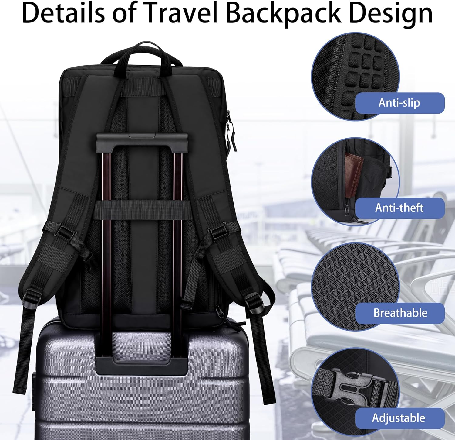 Store New Arrivals Add to Favorite View Feedback Contact Travel Backpack 40L TSA Friendly Flight Approved Carry-On Luggage, Waterproof Business Computer Backpack Fits 17.3 Inch Laptop, Extra Large Weekender Bag with Shoe Compartment Description Age Range Description Adult Capacity Total 40 Liters Number Of Items 1 Product Dimensions 10 x 14 x 20 inches Country of Origin China Item Weight 2.99 pounds Department unisex-adult 40L Large Capacity and Well Organized: Size: 20.5 x 13.01 x 9.05 inches, capacity: 40L. This carry-on backpack provides ample space for all your travel essentials. It has a large main compartment with a separate 17.3-inch laptop compartment that can be opened 90°-180° for security scanning, helping to quickly and easily pass through airport security checkpoints. Multi-compartment Design: The business backpack is equipped with 14 pockets, which can not only accommodate computers or tablets, but also clothes, books, magazines, etc. There is a dedicated leak-proof pocket for toiletries. It also comes with a water bottle pocket and a passport pocket, which is very easy to organize your belongings. There is also a separate shoe bag at the bottom for storing shoes. This backpack can not only be used for work, but also for travel and outdoor activities. Ergonomic Design and Ventilation: The travel backpack features a thickly padded, breathable mesh back panel that provides exceptional comfort. Top and side handles offer versatile carrying options. An adjustable chest buckle helps transfer weight off your shoulders. A strap on the back for luggage pass-through for convenient carry. The backpack is durable and can protect your belongings well. It is made of high-density waterproof polyester fabric, which is scratch-resistant and waterproof. USB Port & Anti-Theft: Equipped with a USB port, eliminating charging worries. You can put your power bank in the backpack to charge, so you can send messages or make calls while walking. In addition, there is a zipper pocket at the back for convenient storage of valuables. It is full of useful features to make you feel relaxed when traveling. Multipurpose Travel Backpack for Men: This laptop backpack combines style with functionality, making it perfect as a work backpack, travel backpack, computer backpack or hiking backpack. Its airline-approved carry-on size makes it perfect for weekend getaways, business trips, and daily commutes. It also makes for a thoughtful gift for professionals, friends, and family on birthdays, Thanksgiving Day, or Christmas. Product Description DURABLE LARGE WEEKENDER BAG DAYPACK MAIN COMPARTMENT It features a large main compartment provides ample space for all your travel essentials LAPTOP COMPARTMENT The tech compartment can accommodate up to 17.3" laptop and 13 inch iPad with accessories SIDE POCKET WET BAG PASSPORT POCKET SHOE POCKET 1 FLIGHT APPROVED 2 LUGGAGE SIZE 3 LARGE CAPACITY WATER RESISTANT BUSINESS RUCKSACK 1 LAPTOP BACKPACK 2 CARRY ON BACKPACK 3 FLIGHT APPROVED BACKPACK 4 TRAVEL BACKPACK ABOUT US We offer the best prices around on high quality products. Our E-store includes media such as books, movies, music and games while offering electronics, toys, sporting apparel, clothing, tools, general home, garden items and more. SHIPPING We are always working hard to ensure your package arrives as soon as possible. Please understand that some factors like weather, high postal traffic, and the performance of shipping companies are outside of our control. We offer free shipping to the lower 48 states and ship within 2 business days of payment, usually sooner. We do not accept P.O. Boxes. Please provide a physical address. For shipping outside of the continental USA, we only use eBay's Global Shipping Program.The item is shipped to KY and then sent to the rest of the world. International customers are responsible for all duties and taxes. Continue to check out in order to calculate costs for shipping the item to your country. Messages regarding eBay's Global Shipping Program MUST be directed at eBay EXCLUSIVELY. RETURNS We offer a 30-Day Return Policy on items which you are not completely satisfied with. You have the option for a full-refund or an exchange of the item. No returns are available on items shipped outside of the USA. PAYMENT We accept PayPal. CONTACT US This page content is yet to come Please ad us to your favorite seller and visit again later Thank You CUSTOMER SATISFACTION We try our very best to make sure every customer is completely satisfied. If there's a problem, message us! We're happy to help.