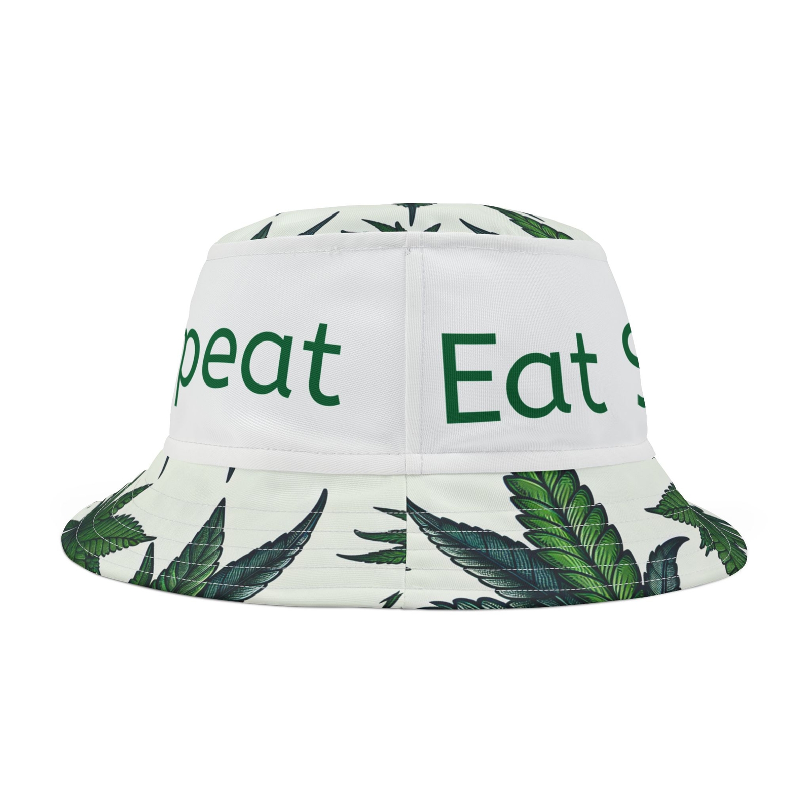 A trendy bucket hat featuring weed leafs and the phrase eat sleep rave repeat, perfect for music festival goers and those who embrace a carefree lifestyle. This hat exudes a chill and relaxed vibe, adding a touch of fun to any outfit. Ideal for summer days, music festivals, and casual outings with friends. Product features - 100% Polyester fabric for durability - Multiple sizes available for the perfect fit - Decorative stitching on the brim adds style - Ideal accessory for sun protection and festival fun - Made in the USA Care instructions - Do not bleach - Dry flat - Iron, steam or dry: low heat - Dryclean - Machine wash: cold (max 30C or 90F)