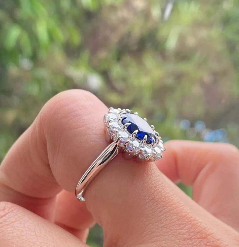 5.00 Ct Natural Blue Sapphire Diamond Wedding Ring 14K Solid White Gold