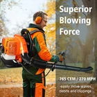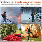 Feature 【Backpack blower】The machine is a light, flexible and efficient environmental protection tool, mainly used for urban road cleaning, Sweeping fallen leaves, road dust, garbage, etc., can also be used for snow removal in winter greenhouses and engineering road walls Dust the base layer before asphalt paving or painting 【2-Stroke】2-cycle 43cc engine provides less emissions, more efficient fuel consumption and less noise. It has a strong cycle engine and maximum fan speed. 【Powerful leaf blower】This leaf blower has a huge air volume, can provide you with the maximum wind speed under your immediate control, is suitable for spacious spaces and helps you quickly clean home and business 【Note: Long-term storage: no fuel】Gasoline is very volatile, stored for a long time (more than 7 days) easy to deteriorate, and produce white powder foam. A mixture of o il used in a two-stroke gasoline engine, which is volatilized, oil is non-volatile, slowly metamorphosed into solid, blocking the oil path, especially the carburetor Specification: Item Name: Leaf Blower Material: ABS,Metal Weight: 23 lbs Mph Idle: 2800 RPM Air Volume: 665 CFM Air Speed:765CEM/270MPH Fuel Tank Capacity: 1.7 L Rated Power: 3hp/2300KW Maximum Speed: 6500r/min Displacement: 63 Cubic Centimeter Engine Type: Single-cylinder Air-cooled Two-stroke Features: Backpack Style, Ergonomic Design, Powerful Wind Force Size Details: Size: 180cm x 54cm x 45cm/70.92" x 21.28" x 17.73" (Approx.) Notes: -Due to the light and screen setting difference, the item's color may be slightly different from the pictures. - Please allow slight dimension difference due to different manual measurement