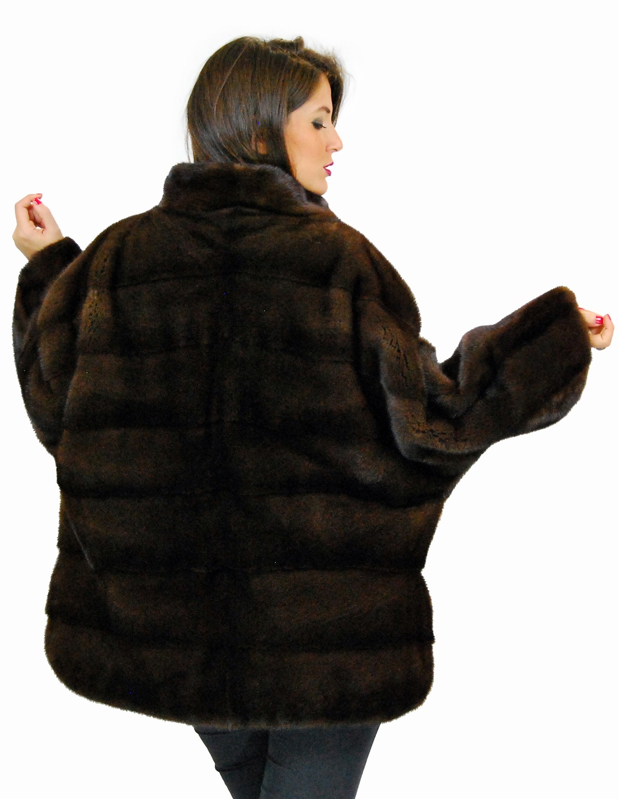 $ 1479.3446-inch Horizontal Mink Sapphire Coat with Korean Collar in Luxe Fourrure de Vison Mink