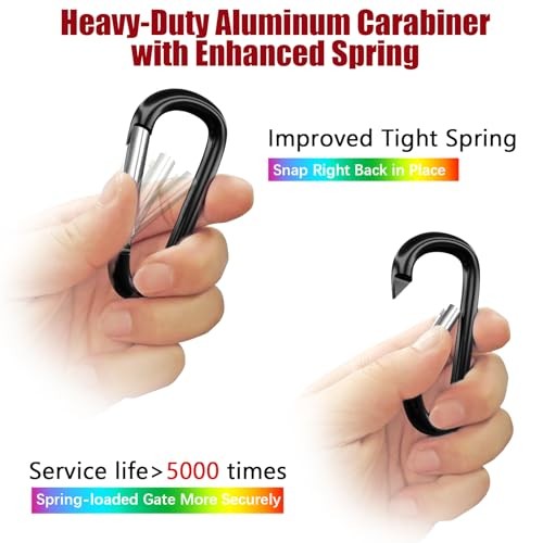 Return Policy Fast Delivery Trusted seller 4" & 5" Extra Large Aluminum Carabiner D Ring, Black Caribeener Clips, Spring Snap Hook for Keychain Clip, Set of 4 Product Description Product Includes: 4" Carabiner Clips (4 Pcs) and 30mm Steel Rings(4 Pcs). These Large Aluminum Snap Hooks are perfect for Rock Climbing, Hammocks, Camping Gear, Outdoor Activities, Heavy-Duty Keychains, and Industrial Applications. Durable Design: Multicolor Aluminum Carabiner Clips. Spring-Loaded Gate for Smooth Opening and Closing. Anodized Finish Resists Fading and Corrosion. Ideal for Outdoor Enthusiasts, Climbers, and DIY Projects. High Strength: Break Limit for Static Force is 240lb (109kg), Making These Carabiners Suitable for More Demanding Tasks. Use Confidently for Securing Equipment, Hanging Heavy Gear, or as Part of a Safety System. Our Improved Spring Clip Withstands 5000+ Open/Close Cycles in Testing. Built to Last for Years of Reliable Performance in Various Environments. Versatile Sizes: 4" Carabiners Feature a 1" Gate Opening, While 5" Carabiners Offer a 1.2" Opening. Accommodates a Wide Range of Attachment Points and Rope Sizes. Perfect for Both Light and Heavy-Duty Applications. Multiple Applications: Ideal for Outdoor Adventures, Home Improvement, Marine Use, Industrial Rigging, Pet Care, and More. Essential Tool for Campers, Hikers, Climbers, Contractors, and DIY Enthusiasts. Shipping Returns Payment Shipping Shipping is FREE to all addresses other than APO/PO boxes in the lower 48 states. All our stock ships from US-based warehouses. Shipped via USPS or UPS (depending on location and package weight) Unless stated otherwise, all orders will ship within 24-72 hours of your payment being processed. Check our feedback to see the great reviews of FAST shipping we offer. Returns Seller does not accept returns Payment We currently accept payment via eBay managed payments only. Once payment is cleared, we will dispatch your shipment within 1-3 business days. Please refer to the "Shipping" tab for more information regarding shipping speed to your destination.