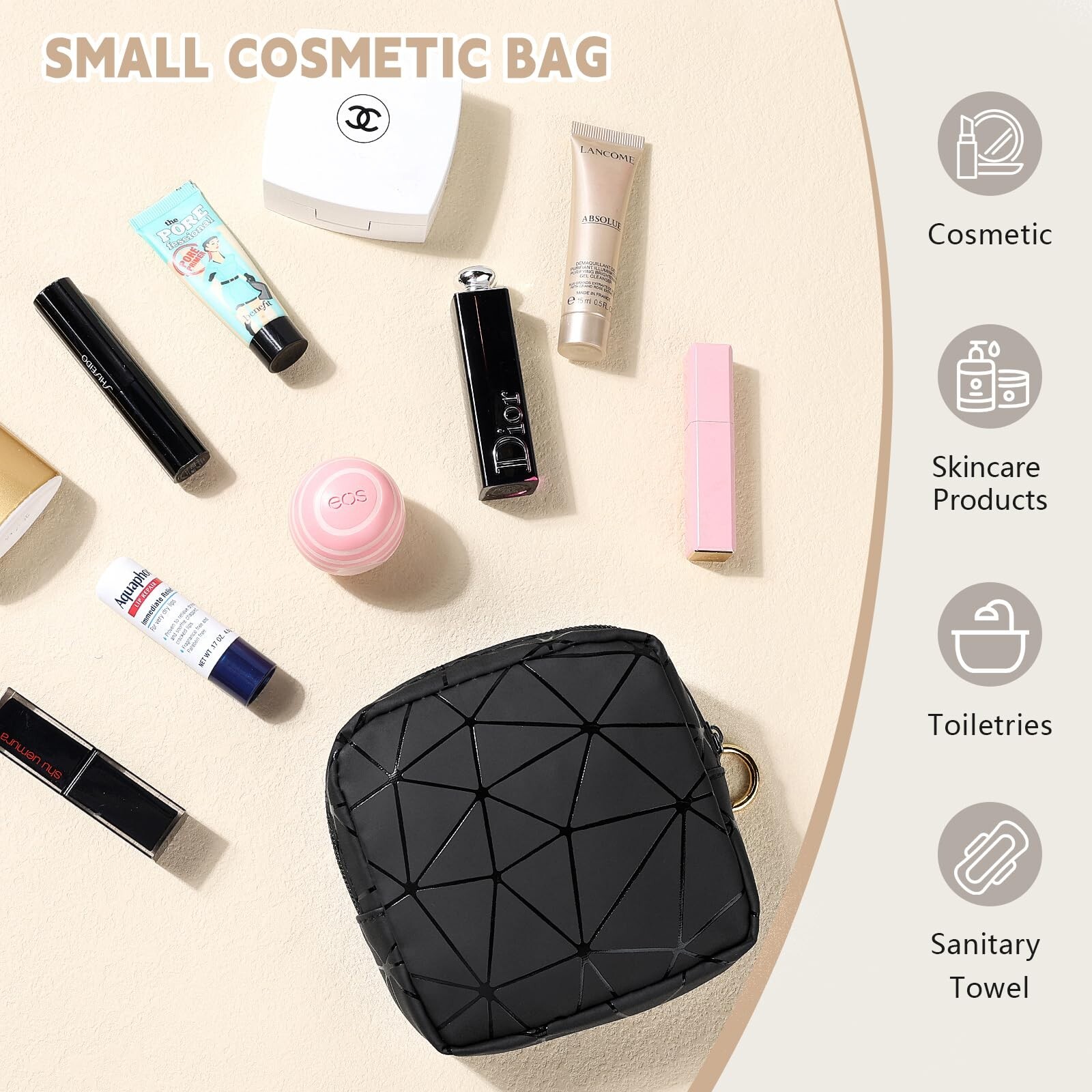 4.5 inch Mini Makeup Bag, Small Cosmetics Bag for Purse with Ring Buckle, Portable Travel Makeup Pouch for Women Girls (Grey) Product Details Size: Small Color: A-Grey-4.5" Brand: Playexen MPN: PL0305-US-03 UPC: Does not apply EAN: Does not apply Product Dimensions: 4.6 x 0.5 x 4.6 inches Item Weight: 1.6 ounces Department: Womens Manufacturer: Playexen Country of Origin: China Item model number: PL0305-US-03 Two Size Options Measuring: Mini: 4.5*4.5*1.2; Large: 8.1*4.9*2.1 inches; The large size is perfect for everyday use and shorter journeys, providing sufficient storage while remaining portable. The small size is designed for maximum portability, allowing you to carry just the essentials on the go or daily use Convenient Design & PortableThe interior of the makeup bag features pockets, providing convenient storage options for organizing your cosmetics. These pockets allow you to keep your brushes, lipsticks, and other small items separated. Wide-open brings a easier way for you to take your cosmetics. It is the perfect choice for any travel High QualityThe fabric is made of water-resistant PU leather and lining-nylon,ensuring cosmetic bag is sturdy and easy to wipe clean, dust and water resistant to easily protect your personal belongings. Smooth metal zipper, can make it closed more easy-pulling Multiple Color Options To cater to individual preferences and style, the makeup bag is available in a variety of colors. With its sturdy construction and efficient organization features, it ensures that you can easily access and protect your cosmetics for both your daily beauty routine and travel adventures Gift forIts elegant geometric rhombus appearance makes this small pouch as a travel makeup bag, daily used money bag, stationary bag for study and office use. It also can be a perfect gift for your friends, family on birthdays, Mother's Day, Christmas Day, Valentine's Day and other festivals!
