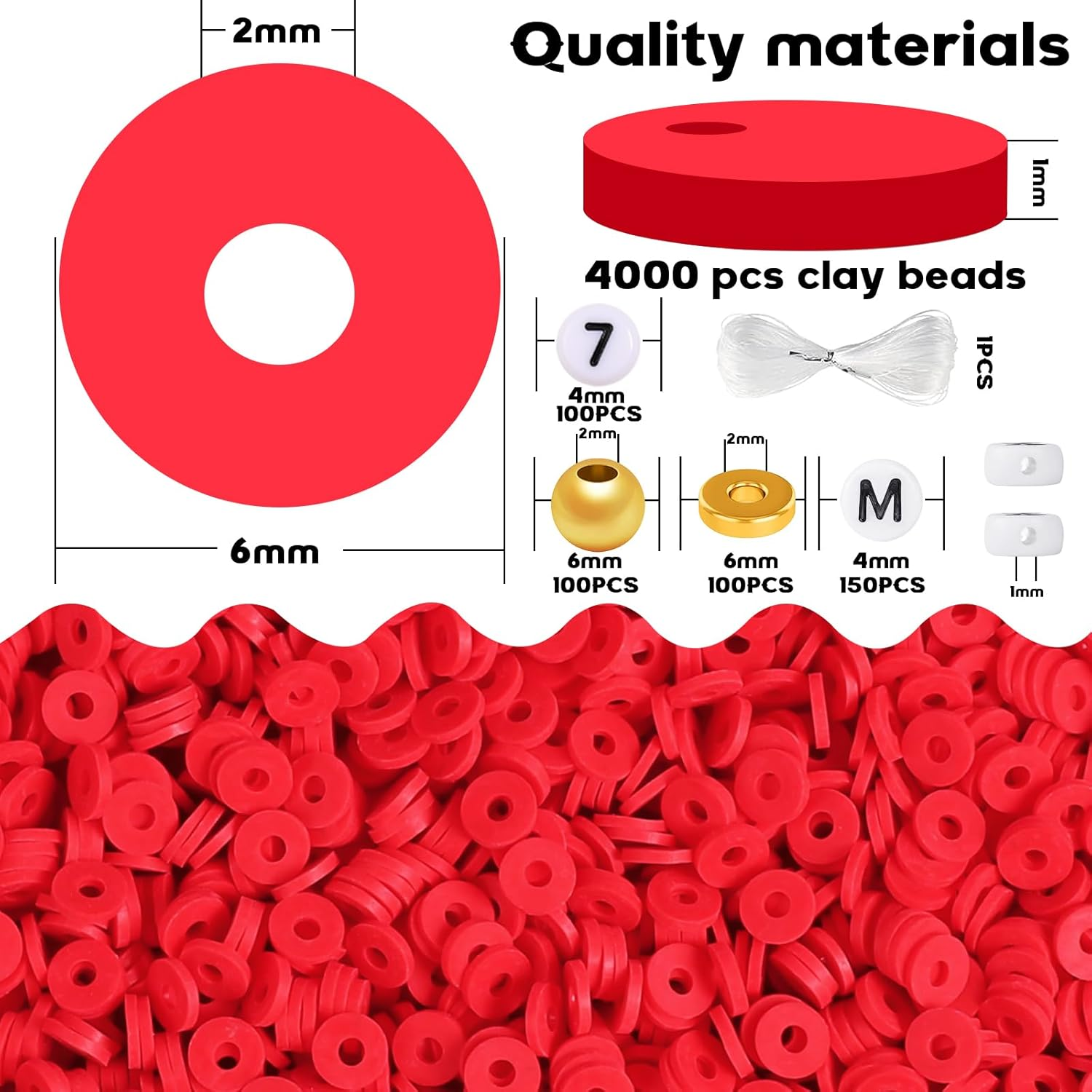 Menu Other Items Feedbacks About Us Contact Us Add To Favorites 4500Pcs Red Clay Beads Bracelet Making Kit, Friendship Bracelet Kit Flat Polymer Clay Heishi Beads for Bracelets Jewelry Making Kit with Letter Number Gold Spacer Beads for Women GREAT JEWELRY KIT: This bracelet making kit includes 4000 6mm christmas red clay beads,150pcs letter beads、100pcs number beads、100pcs gold round beads、100pcs gold flat spacer beads and a roll of elastic cord. The perfect clay bead bracelet making kit is definitely great for bracelet lovers EASY TO USE: These bracelet beads come in a clear storage box, the beads have a wide center hole design for easy threading, convenient for making a variety of jewelry. Whether you are a novice or an experienced bracelet maker, you can easily design stunning pieces PERFECT FRIENDSHIP BRACELET MAKING KIT: Taylor S fans swifties gather! Dive into the world of Taylor-inspired friendship bracelets with our special kit, perfect for gifting to fellow music enthusiasts. Personalize bracelets with spelled-out names, favorite lyrics, album titles, or phrases, and wear them proudly to TS concerts or movie screenings. It's the ideal way to bond over shared love for TS music and create lasting memories together HIGH-QUALITY AND DURABLE: The flat clay beads are made of polymer clay, eco-friendly, and highly durable. They feature a 6mm diameter, a 2mm hole, and a 1mm thickness. The clay beads for bracelets are lightweight, fade-resistant, comfortable, and waterproof when worn at the beach or pool BEST GIFT: Clay bead bracelet kit make an ideal gift for your daughter, granddaughter, sister, or best friends, adding a touch of decoration. The beads are a meaningful and cheerful gift choice for birthdays, Valentine's Day, Mother's Day, Christmas, Thanksgiving Day, and other occasions NOT JUST BRACELET MAKING: The red polymer clay spacer beads kit are perfect for various DIY crafts such as jewelry making, bracelets, necklaces, earrings, anklets, keychains, and any ornaments Suitable for ages 12 and up Product Description Item Specification Item model number 4500 Item dimensions L x W x H 7.2 x 5.19 x 0.66 inches Age Range (Description) Adult Color Red Material polymer clay Country of Origin China Style Red Round Item Weight 9 ounces Theme Christmas Size 6 mm Model Name 4500pcs Clay Beads Kit Seasons All Seasons Art Craft Kit Type Beading and Jewelry Making Number of Pieces 4500 Product Dimensions 7.2 x 5.19 x 0.66 inches Manufacturer Store SHIPPING FREE FREE SHIPPING We are always working hard to ensure your package arrives as soon as possible. Please understand that some factors like weather, high postal traffic, and the performance of shipping companies are outside of our control. We offer free shipping to the lower 48 states. We do not accept P.O. Boxes. Please provide a physical address. If you have a problem or question regarding your transaction please contact us immediately. We will work with you to resolve any problem you may have. Thank you