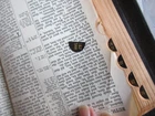 WELL TAKEN CARE OF BIBLE ABOUT 8.5" X 5.5" NO ODORS ONE TAB FELL OFF AND IS IN BOOK, SEE PICS