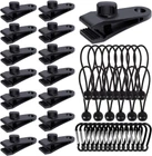 45Pcs Tarp Clips Heavy Duty Lock Grip with Carabiner and 45PCS, Black Product Details Color: Black Brand: Dualshine Material: Nylon Water Resistance Level: Waterproof Number of Items: 45 Recommended Uses For Product: Camping, Caravan, Boating Included Components: [15 x tarp clamps heavy duty lock grip, 15 x bungee cords, 15 x carabiner clips] Size: 45PCS Ultraviolet Light Protection: False Manufacturer: Dualshine 【Tarp Clamps Heavy Duty Lock Grip】--- These screw-down type tent fasteners are designed with adjustable spiral thumb screws to tighten the jaw to provide strong gripping power on your tarp. Perfect for securing a sun sail, pop-up camper, or tarp. 【High-Quality Material】--- Package Included: (15 x tarp clamps heavy duty lock grip + 15 x bungee cords + 15 x carabiner clips). Made of solid PA material, our tarp clamps are not easy to break. If you're expecting to stretch a tarp tightly or have it fight any wind, get our tarp clips. 【Easy to Install】--- These heavy-duty lock grip tarp clips are installed super fast and sturdy, handy, and easy to attach. The hole of the tarp clamps is 0.5 inches in diameter so you can stretch it with attached bungee cords without difficulty, tighten or loosen the screw knob to suit thick or thin tarps. 【Special Mouth Design】 --- This awning clip has a unique toothed design that makes the teeth more stable. And the opening of our lock grip clamps can be adjusted up to 0.25 inches, large enough to fit a variety of tarps, very suitable for holding up a tarp, car cover, canopy, boat cover, swimming pool cover, or temporary shelter. 【Wide Application】--- Our tarp clamps are suitable for most fabric coverings that require additional support points. Can be used as tent clips, tent clamps, tarp tie-down clips, tarp holders, tarp fasteners, tarp clips with bungee, car cover clamps, tarp fasteners, tarp clips camping, tarp ball bungee cords, shark tarp clips, camping awning clips.