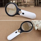 Welcome to Kumbala eBay Store Description: - 100% brand new and high quality - 3 LED Hand-held 45X + 3X magnifier Combo - Big lens 3X, 75mm - Small lens 45X, 20mm - LED lamps: 3 lights - Suit for offices, reading, stamps collecting, schools, machinery, jewellery appraisal etc Features: - Convenient, with 3 LED lights, independent lighting design for the large and small lens, ensure better lighting effect - Clear, with 45X magnifier and 3X magnifier. - 3X can be used in daily reading and 45X - This can be used to check smaller objects, such as jewelry, stone and so on. - Comfortable to hold, light weight and with anti-skid design on handle. - Easy to operate, simple design on the battery case and switch button. - Battery Not Included - Please note you will need 3AAA batteries to power the LED's (not included with your purchase) Included in this package: - 1X Reading Magnifier Warranty & Customer Service : 30 days money back 60 days seller's guarantee, 24 Hours friendly customer service!