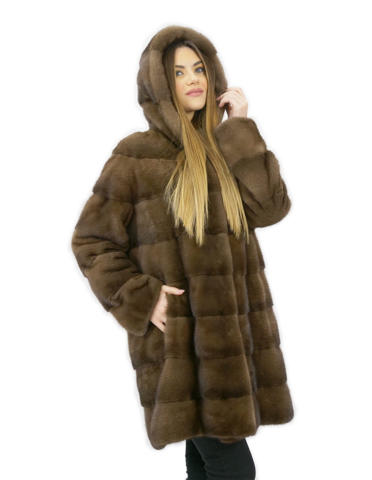 Fur coat 48 mink horizontal with brown hood 88 cm long external pockets INTERNATIONAL SHIPPING Shipping all over the world MADE IN ITALY PAYMENTS ACCEPTED We accept payments via PayPal, Credit Card, European bank transfer DESCRIPTION Mink coat with whole skins in horizontal processing. Our mink furs are productions made in our laboratories, therefore a unique and exclusive mink coat. The possibility of producing our furs of the highest quality allows us to make proposals at different prices with various opportunities at low prices always available. Furthermore, our laboratories and our collaborations guarantee a mink fur of undisputed quality, 100% made in Italy. The quality of female mink fur used for this is a mink fur coat with furs signed saga furs. The mink fur coat comes in a splendid demi buff color with a beautiful hood collar lined internally and externally with whole mink skins, long sleeves, 88 centimeters long and normal external pockets. MEASURES Exact color - Brown Size - 48 Garment - Coat 90 cm Height cm (H) - 88cm 34.6 inches Pelvis cm (B) - 124cm 48.8 inches Breast Chest cm (C) - 112 cm 44 inches Shoulder width cm (D) - 48cm 18.8 inches Outer Sleeve Length cm (E) - 62cm 24.4 inches Inner Sleeve Length cm (F) - 40cm 15.8 inches Waist cm (G) - 120cm 47.2 inches Neck Height cm (H) - Hood Bottom Width cm (I) - 128cm 50.4 inches Garment Size - 48 Color - Brown Item number - 133AH/21-M/82N Padding - Brown CODE ARTICLE 00266956 Prestalia e-commerce solutions.