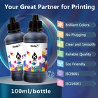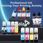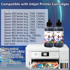 View more great items KOALA 502 Ink Premium Dye Ink Bottles Replacement Ink Compatible with 502 T502520 Ink Koala 502 Ink Compatible with Epson EcoTank 502 ink (Non-OEM); High-capacity: 70ml per color ink bottles, 127ML Black Ink bottles; High-yield ink bottles help you to reduce printing costs; Easy to Refill and Use: Unique design for easy refill; No clogging and print smoothly. Reliable Performance: Great compatibility, superior quality, vivid colors and smooth textures, sharp black prints, and brilliant colors for office home and school, professional artists, and business owners printing. Certificate: ISO-9001 and MSDS certificate. Buy with confidence, any quality problem could get a refund or replacement. 2 years warranty, 1 Day Shipping, Free Returns, Buy with confidence NOW !!! NOTE: If the foil selaer inside the bottle is not easy to peel, you can use a tool or scissors to punch a hole to open it. Compatible EcoTank ET-4700 ET-4810 ET-4800 ET-2720 ET-4700 ET-2400 ET-2800 ET-2803 ET-2840 and more. Each Package Include: 1* Bottle of 127 ml Black Color Ink 1* Bottle of 70 ml Cyan Color Ink 1* Bottle of 70 ml Magenta Color Ink 1* Bottle of 70 ml Yellow Color Ink 1* Pair of Disposable Glove HELPFUL TIPS: *** This ink can only be used for refillable cartridges and CISS (continuous ink system), such as ecotank supertank cartridges. If you do not know how to refill the cartridge, please get in touch with the seller for help. 1. Please thoroughly clean the ink tank and print head before using our product, because different brands of inks can't be mixed; 2. If the ink tank has been filled and the ink bottle is not used up, please cover the cap and keep it in a place that avoids high temperature, high humidity, and direct sunlight; 3. Please print a test sheet before you do bulk print; 4. Please use up the rest ink ASAP.