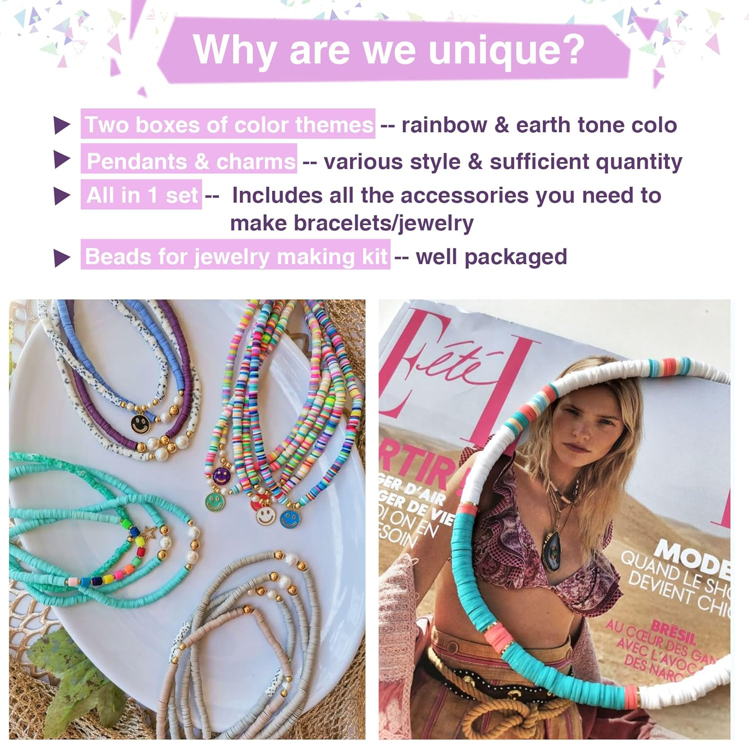 Menu Other Items Feedbacks About Us Contact Us Add To Favorites 4550 Pcs Clay Beads for Bracelet Making, 48 Colors Flat round Polymerbeads Spacer Heishi Beads with Letter Beads and Various Pendant Charms Kits for DIY Crafts All-in-One Beads Set: Package contains everything you want: 48 colors clay beads in 2 boxes, 1 box of letter beads and charms/ pendants (detailed acc will be shown in the picture) Rainbow & Earth Tone Color: We offer two boxes of handmade clay beads with different themes: one in rainbow color and one in earth tone. These impressive flat beads boast that every color is totally different and bright so that every one will find their own color to make necklaces, bracelets and other DIY projects Various Charms & Sufficient Quantity: Accessories/charms/pendants are in a separate box with 24 different styles, specially selected with the most popular styles to meet your DIY needs Cute Size& Durable Material: Flat round clay bead is appro. 6 mm in diameter, 1mm in thickness, hole size is 2 mm, which is the perfect size for bracelet making or crafts projects. Clay beads are made of polymer clay, handcrafted, safe, lightweight, waterproof, comfortable wearing and will not fade Best Gift Choice: People often buy it and make their own special DIY gifts, such as clay beads necklaces, bracelets, anklets, rings, earrings, etc. And give it to someone important to show their love and gratitude Enjoy Your DIY Time: Beads are great craft items. Clay beads for bracelet making is not only great for stress relief, but also can improve the parent-child relationship and more company time with kids or students Product Description Item Specification Item model number 3 Color 48 colors Material Plastic Country of Origin China Item Weight 0.1 Pounds Shape Round, Square Size L-4550PCS Number of Pieces 4550 Product Dimensions 8.67 x 7.87 x 2.36 inches Manufacturer 1-1 SHIPPING FREE FREE SHIPPING We are always working hard to ensure your package arrives as soon as possible. Please understand that some factors like weather, high postal traffic, and the performance of shipping companies are outside of our control. We offer free shipping to the lower 48 states. We do not accept P.O. Boxes. Please provide a physical address. If you have a problem or question regarding your transaction please contact us immediately. We will work with you to resolve any problem you may have. Thank you