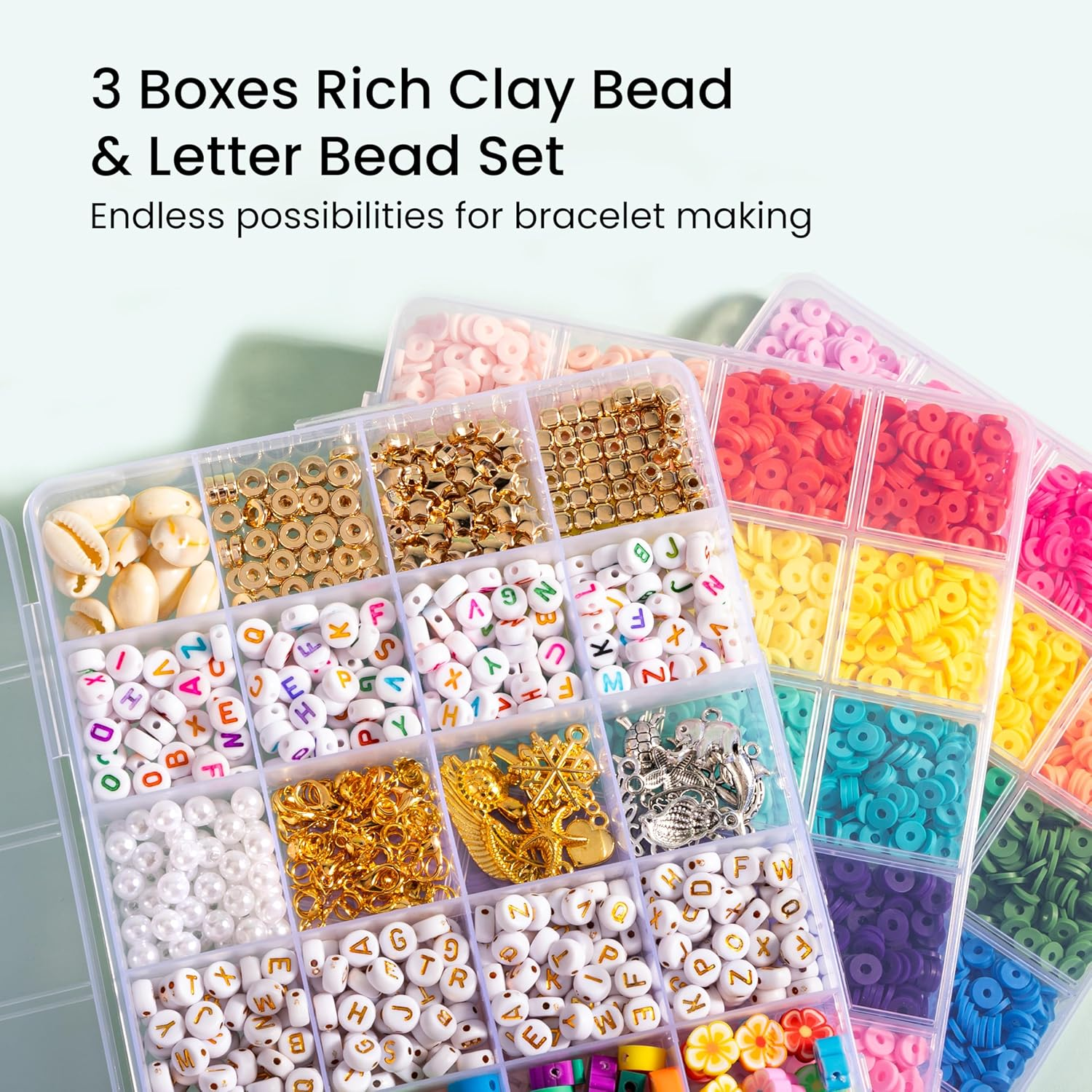 Menu Other Items Feedbacks About Us Contact Us Add To Favorites Clay Beads Bracelet Making Kit - 3 Boxes 48 Colors Clay Beads and 3 Types Letter Beads with Bead Spinner, Complete Friendship Bracelet Making Kit, Crafts Gift for Girls Ages 6-12 Everything You Need, Well Organized in 3 Boxes: New & creative combination set for everything your needs with lots of variety and choices. 7200 x clay beads in 48 colors, 600 x letter beads(3 types of all A-Z ), 1 x bead spinner, 1 x bead needles, 1 x manual, 50 x love beads, 50 x polymer clay beads, 150 x golden beads, 70 x lobster clasps, jump rings,buckles, 76 x peals, shells and pendents, 2 x beads tweezers, 1 x scissors, 2 x elastic string. Fun and easy clay beads bracelet making kit 8200 PCS Clay Beads Set with 48 Color: This creative polymer clay bead bracelet kit has different color and all kinds of beads choice, is filled with endless possibilities for bracelet making. Make your own various of clay beads bracelets. An ideal birthday or Christmas gift options Bead Spinner for Bracelet Making: Bead Spinner - a time saver specifically designed for beading, can quickly improve the efficiency of beading, allow you make your own bracelets in a more interesting way. Make your clay beads easier and faster with bead spinner. Make 10 times as many bracelets, increase 60% efficiency in making bracelets Great Gift: The finished bracelets can be given to friends as gifts to promote friendship, or you can go to a Tyler concert together and make new friends by exchanging bracelets with other fans! Friendly Material: The polymer clay beads are made of eco-friendly and enduring materials, clay beads for bracelets are uniform thickness, lightweight, bright and long-lasting color, comfortable to wear. Available in a wide range of vibrant colors and shapes, making craft time more enjoyable Product Description The video showcases the product in use. The video guides you through product setup. The video compares multiple products. The video shows the product being unpacked. Item Specification Item model number B-106U Item dimensions L x W x H 7.87 x 5.51 x 4.72 inches Age Range (Description) Adult Color Multicolor Included Components Clay beads, Letter beads, Bead spinner, Bow gift box, Charms, Bead needles, Manual, Love beads, Polymer clay beads, Golden beads, Lobster clasps, Jump rings, Buckles, Peals, Shells, Pendents, Beads tweezers, Scissors, Elastic thread Material Plastic Country of Origin China Style Box Item Weight 2.4 pounds Theme Bracelet Making Kit Model Name Bead Spinner Seasons All Seasons Art Craft Kit Type jewelry making Number of Pieces 8200 Special Feature Corded Product Dimensions 7.87 x 5.51 x 4.72 inches SHIPPING FREE FREE SHIPPING We are always working hard to ensure your package arrives as soon as possible. Please understand that some factors like weather, high postal traffic, and the performance of shipping companies are outside of our control. We offer free shipping to the lower 48 states. We do not accept P.O. Boxes. Please provide a physical address. If you have a problem or question regarding your transaction please contact us immediately. We will work with you to resolve any problem you may have. Thank you