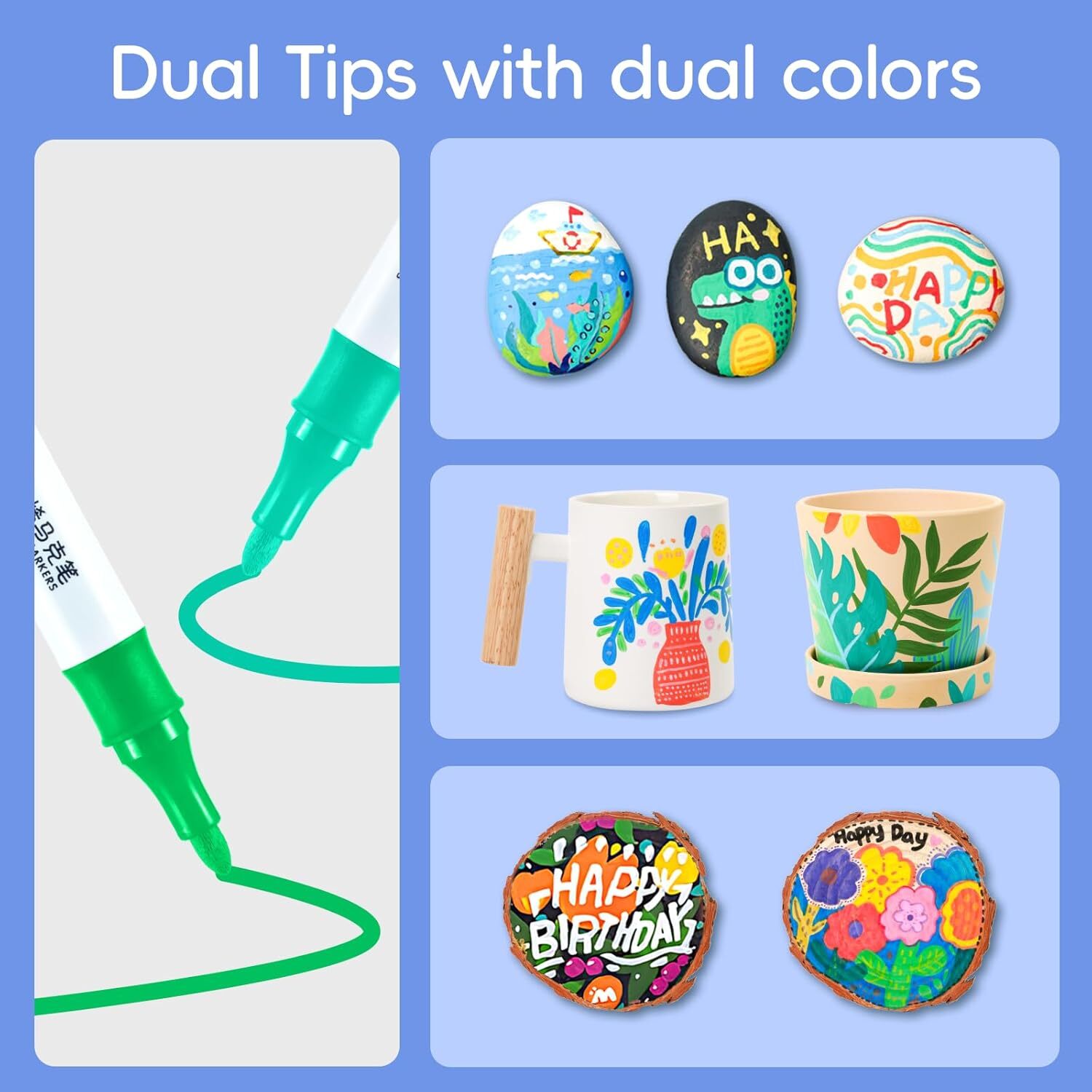 $ 17.3936 Dual-Tip Acrylic Paint Markers for Wood, Ceramic, Glass, Stone - 36 Vibrant Colors