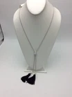 $49 Lucky Brand silver tone pearl cord lariat Chain 24" Pendant 8"