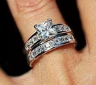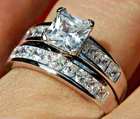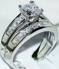 4.Ct Princess Cut Lab Created Diamond Bridal Ring Band Set 14k White 925 SILVER