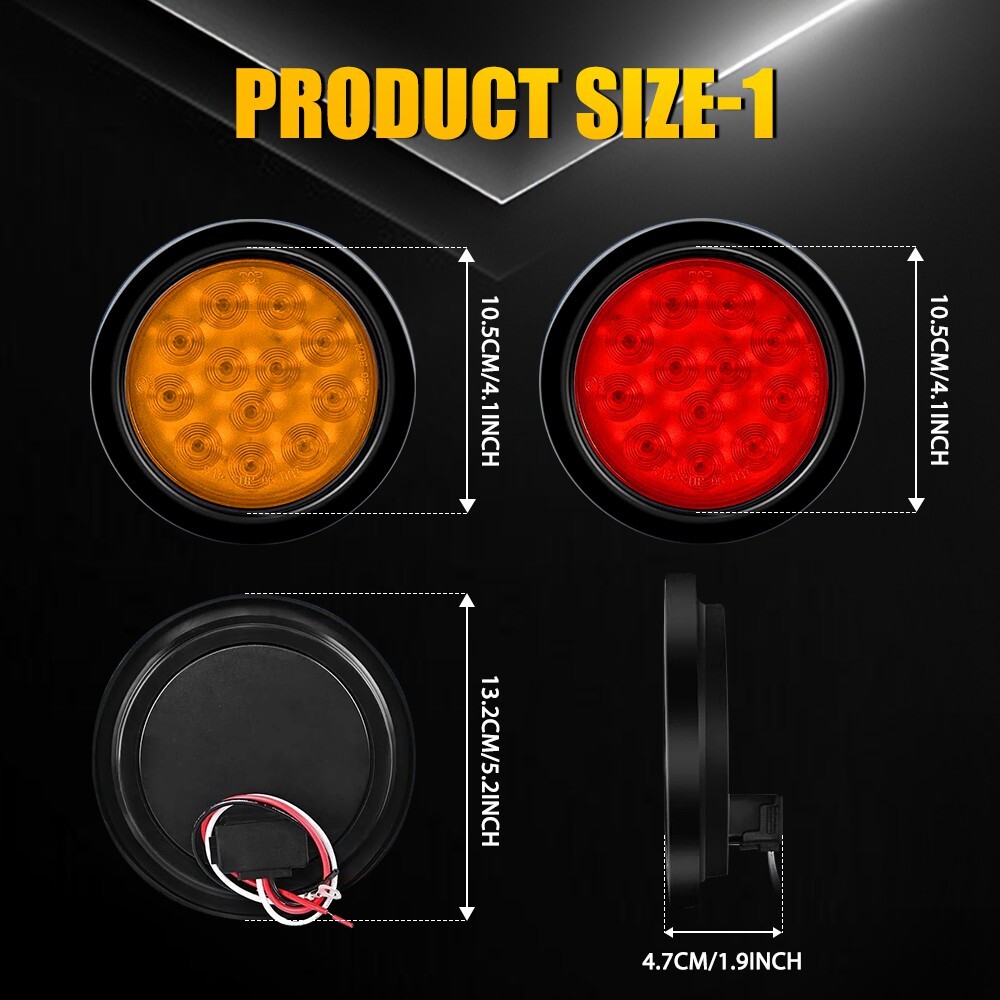 Specification Light color:Red&Yellow Shell diameter:4 inches Material:ABS+PC+Rubber+Metal LED quantity:12LED Voltage:12v Waterproof grade:IP67 Service life:50000h+ Features: *Upgraded LED: Each lamp consists of 3030 SMD LED chips with wider lighting angle and better heat dissipation. It is 3 times brighter than other products. *Waterproof: The tail light is highly silicon sealed with an IP67 waterproof rating, which works even under extreme conditions such as rain and snow. *Easy to install: Easy installation with direct replacement, other modifications are not required. *Unique design 4Inch Red&Yellow Tail Lights w/Mounting Bracket Universal For DC 12V System Specification Light color: Red&Yellow Shell diameter:4 inches Material:ABS+PC+Rubber+Metal LED quantity:12LED Voltage:12v Waterproof grade:IP67 Service life:50000h+ Features: *Upgraded LED: Each lamp consists of 3030 SMD LED chips with wider lighting angle and better heat dissipation. It is 3 times brighter than other products. *Waterproof: The tail light is highly silicon sealed with an IP67 waterproof rating, which works even under extreme conditions such as rain and snow. *Easy to install: Easy installation with direct replacement, other modifications are not required. *Unique design The groove inside the ring has been upgarded, adding three bumps to make the connection between the ring and the taillight tightly.These help the tailights not to fall out and can be firmly fixed the seal ring installed on the mounting bracket.You don't need to worry about the loose lights or wires anymore! *Connection White wire connects to negative. Red wire connects to red light with high brightness Black wire connects to red light with low brightness *Functions It can be used as running lights, brake lights, taillights and so on. .*Wide application: Universal Fits All vehicles with 12V Power Supply such as car, truck, trailer, Semi Trailer, Semi Trucks, boat, flatbed, bus, lorry, van, caravan, camper, RV Jeep etc. Note: Please check the detail information carefully before purchasing. Your satisfaction is our utmost concern, please feel free to contact us for any questions and concerns. Package Include: 4Inch Tail Lights w/ Mounting Bracket*4 Item Specifics Brand AUXITO Lighting Technology LED Suitable For Tail Light, Turn Signal Light, Brake Light, Runnig Light Number of Bulbs 4 Light Color Amber, Red Type Light Bulb Features CANbus Compatible Voltage 12 V Fitment Type Direct Replacement Bulb Life Hours Up to 50,000 Hours Waterproof rate IP67 Placement on Vehicle Rear, Upper, Lower Material ABS, PC, rubber, metal Lens Color Amber, Red LED qty 12LED Suitable For 1 For trucks, trailers, tractors, semi-trailer, horse trailer Suitable For 2 For travel trailer, dump truck, Boat, special vehicle, etc Universal Fitment Yes Manufacturer Warranty 2 Years FAQ ♥ If you have a decoding problem or any other problems, please contact us first, we will help you with it. We will reply you within 24 hours in working days. I'm a new seller, thanks a lot for your trust and convince! I will serve you with all my heart. ♥ Q1: Will this bulb fit my vehicle? A: We can match almost any vehicle to one of our bulb sizes. eBay only lets us include some vehicle fitments per listing, but if your vehicle does not show up on the compatibility table at the top of our listings, welcome you to contact us for free consulation before purchasing a product. Q2: My item has not arrived, what's taking so long? A: Sometimes items take longer than expected, especially if it’s going far or to rural area. Check with your post office to see if your item has been held up. Sometimes Royal Mail will not update a tracking number until it has arrived at its destination. If your item still don't arrive after a few days, let us know so we can double check for you and help solve it asap. Q3: My bulbs won't fit, help! A: Special bulb holder may be required. See if you can take the holder from the stock bulb. If not, let us know. The bulb size may be wrong, double check the item you received with the item you ordered. Do you have an aftermarket lighting housing? These may not be perfectly fitted for aftermarket bulbs and will require some manual modifications. Q4: Neither side lighting up? Both sides flicker, hyper flash, or work inconsistantly. A:Check the light fuses, and then check the ballast plugs to insure correct installation. If this doesn't work, there may be a voltage problem with the vehicle. You probably just need a relay or capacitor. Even though some bulbs are builtin resistors, they may still need a decoder. Pay & Ship (1). We gladly accepts payment via PayPal, We will ship your item(s) within 24 hours. (2). Before payment, please keep the consistency of Paypal address and ebay address. (3). Quantity orders are welcome! Returns (1). We offer 60 days free return policy. Please contact us within 60 days from the date you receive your order if you have any issues with the product or want return. Refund will be send after we got your resend package. (2). All returned items should be in the original packaging , return tracking information should be provided . Contact Us (1).Negative feedback will not help resolve any problems you have, please contact us via eBay messages before leaving negative feedback , our customer service will make best effort to help you with the issues. (2).We maintain high standards of excellenceand strive for 100% customer satisfaction! Feedback is very important to us. We request that you contact us immediately before you give us neutral or negative feedback, so that we can satisfactorily address your concerns. About us We're professional in car and motorcycle accessories, especially in LED bulbs. We have our own factory and R&D team. Our belief is to sell top quality items that fit your car and serve you with our heart. Anything please feel free to contact us! Our customer service is very responsibility. Come and follow us! DESCRIPTION NEW ARRIVED HOT SALE C