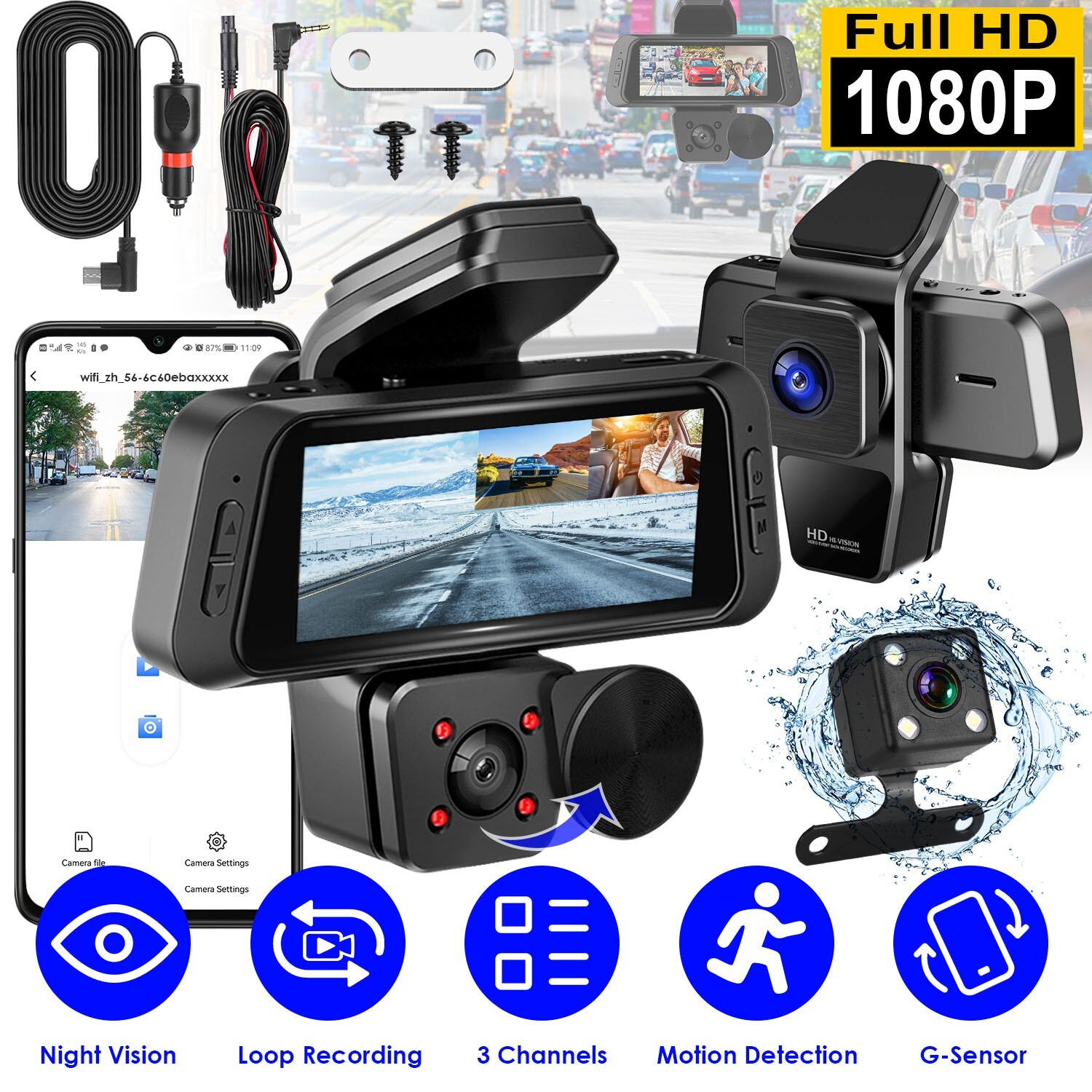 Free Shipping Featured Item Product Detail Image Gallery Product Description Overview: Can’t entirely control the driving ambient via unaided naked eyes? Afraid of running into the wall or deviate from the main parking area when reverse your car? You can timely know what happened in an emergency occasion with this dash cam. Designed with 1080P front camera with 170° view, 120° in-car & rear camera, you can be informed of the road status ahead, behind and inside. Built-in motion detection and infrared lights deliver clear night vision and ensure your property security from day to night. Support max 128G MMC card(not included), our car dash cam provides seamless loop recording. Easily mount on your car, non-shaking and not disturb your car panorama. Features: 1080P FHD Dash Cam With 3 Channels: Featured with 1080P high-definition front camera with wide 170° angle,480P in-car & rear camera with 120° angle,our 3-channel car dash cam provides full vision coverage of your car. The front camera delivers clear and sharp video while IP67 waterproof rear camera always keeps you well informed of the road status behind even in harsh weather conditions. Moreover,7 optional picture-in-picture displays simultaneously helps capture and retain evidence in unexpected collision. Motion Detection & Night Vision: Always worrying about thief stealing or neighbors scraping your car? Our dash camera with motion detection will automatically start recording whenever it detects any moving objects nearby. Advanced F2.0 large aperture and IR lights ensure optimal visibility y during nighttime driving or in low-light condition,protecting your property at all times. G-Sensor & Seamlessly Recording: Support max 128G MMC card(not included) to have a seamless loop record. When the memory card is full,the camera will automatically overwrite those old videos with the newly recorded ones. In this way,you will always have access to latest ones. When G-sensor detects sudden shock,it will save the clip of the accident to the memory card and lock in place to avoid being overwritten. Built-In WiFi & App Control: After connected to the Viidure App via WiFi,you can manage multiple functions of this 3 channel dash cam,such as motion detection,loop recording duration,video sound recording and more. What’s more,the app also supports video view,playback and download on your IOS or Android smartphone,which is convenient to share those beautiful travel landscapes with friends and family. Easy Installation: Easy to install. Just stick the car dash cam to the windshield,install the rear camera based on the car structure,plug the cigarette lighter into the socket and then start the dash cam. and. Our space-saving car dash cam,which won’t not block your line of sight while driving,is suitable for most vehicles. Specifications: Brand: iMounTEK Product Type: 3 Channel Dash Cam Color: Black Material: ABS App Name: Viidure Cigarette Lighter Voltage: DC 12V(Input); 5V/2A Type-C(Output) Screen: 3.16” IPS 4:3 Screen Resolution: Front: 1920x1080P, 130W Pixel; In-car & Rear: 640x480P, 30W Pixel Viewing Angle: Front: 170°; In-car: 120°; Rear: 120° Front Camera: 6-Glass, F2.0 Aperture Rear Camera Waterproof Rate: IP67 Speaker: Monophonic 15-10mm speaker Mic: 4015 Standard Omnidirectional Microphone Loop Recording: Support G-sensor: Support Motion Detection: Support Not Support: Parking Monitor Storage Card: MMC Card (Max 128GB) NOT INCLUDED IR Lights Night Vision: Support Battery: 150mAh Built-in Battery Operating Temperature: -20-70℃/-4-158℉ Frequency: 50/60Hz Dash Cam Size: 10.5*9.5*4.5cm/4.13*3.74*1.77in Dash Cam Weight: 85g/0.18lbs Rear Camera Size: 2*2*2cm/0.78*0.78*0.78in Rear Camera Cable Length: 6M/19.68FT Cigarette Lighter Cable Length: 3.3M/10.82FT Package Size: 15*11*7cm/5.91*4.33*2.75in Package Weight: 326g/0.71lbs Package Contents: 1x Dash Cam 1x Cigarette Lighter Cable 1x Rear Camera 1x Sticky Pad 2x Screws 1x Adhere Pad 1x User Manual Terms & Conditions Thank you for your business ! On Jan 16, 2025 at 19:44:14 PST, seller added the following information: