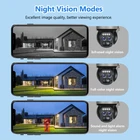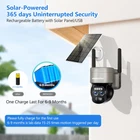 【2.4Ghz WiFi & Solar/Battery Powered】solar security cameras wireless outdoor supports 2.4Ghz WIFI connection (5Ghz not supported). With the solar panel, just connect the camera to the solar panel for continuous power supply. Built-in high-capacity battery allows continuous power supply through the battery even in bad weather or low sunlight, providing uninterrupted protection for your home for 365 days. 【PIR Motion Detection & Auto Tracking】Built-in sensitive PIR motion sensor effectively distinguishes human from other things and reduces false alarms. Once any abnormality occurs in the monitored area, you can receive a real-time push on your mobile phone. The solar camera outdoor wireless automatically tracks the movement of intruders and activates the alarm sound and spotlight to deter unwanted visitors.Support custom detection areas, only focus on key areas. 【PIR Motion Detection & Auto Tracking】Built-in sensitive PIR motion sensor effectively distinguishes human from other things and reduces false alarms. Once any abnormality occurs in the monitored area, you can receive a real-time push on your mobile phone. The solar camera outdoor wireless automatically tracks the movement of intruders and activates the alarm sound and spotlight to deter unwanted visitors.Support custom detection areas, only focus on key areas. 【360°PTZ & 5Dbi Dual Antenna】PTZ outdoor camera wireless supports 355° panning 90° tilting, even when you are outside, you can easily view every corner in the surveillance area through APP, 360° no dead angle surveillance. Built-in microphone and speaker, you can talk clearly with visitors in the surveillance area or warn suspicious people. Upgraded 5Dbi dual antenna, more stable network connection, smoother and clearer real-time video. 【2-Way Audio & Intelligent Storage】Built-in microphone and speaker, you can communicate with visitors in the monitoring area in real time at any time, support multi-person sharing, just share the QR code to your family and friends. Video can be recorded to micro SD card with maximum capacity of 256GB and cloud storage, encrypted secure data(SD card not included).